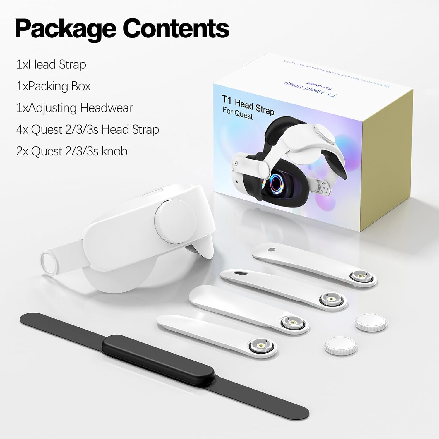 【Complete VR Accessory Kit】Includes: 1xHead Strap 1xPacking Box 1xAdjusting Headwear 4x Quest 2/3/3s Head Strap 2x Quest 2/3/3s knob