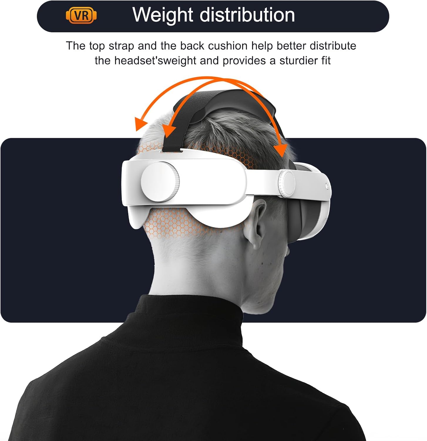 Customers find the VR headset strap easy to use, with one mentioning it lifts up for easy removal and another noting it rests on the back of the head. The strap is comfortable, with one customer reporting no pain during hours of use, and customers appreciate its adjustment ability, with one highlighting the dual knobs. They praise its effectiveness in reducing pressure during long sessions.