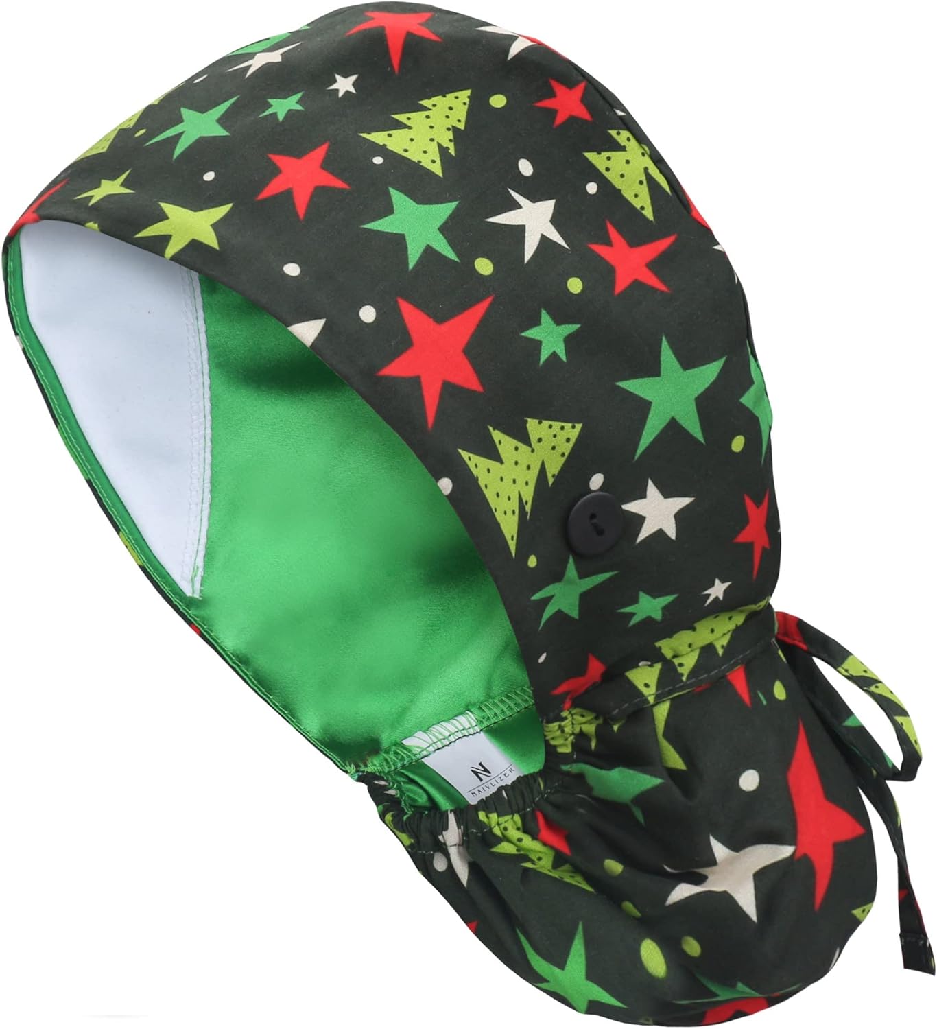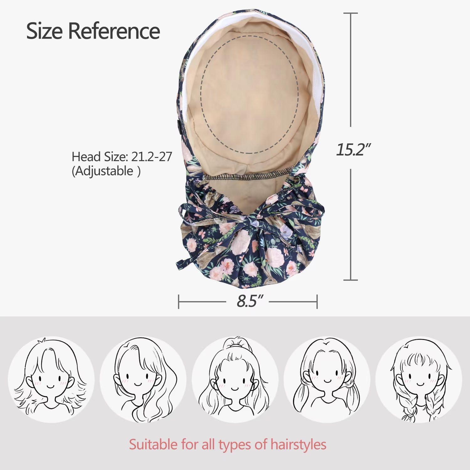 Customers find the working cap comfortable and well-made, with a silk lining inside and vibrant patterns that match the product images. The cap provides good hair protection, with one customer noting it helps prevent frizzing, and is particularly suitable for clinical and hospital work. While many customers appreciate the fit, with one mentioning it accommodates long hair well, some find it too small.