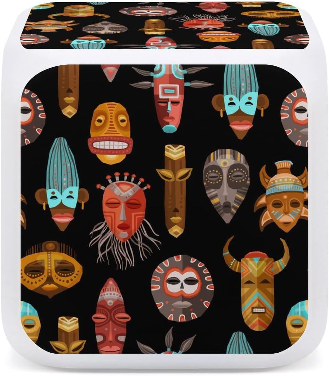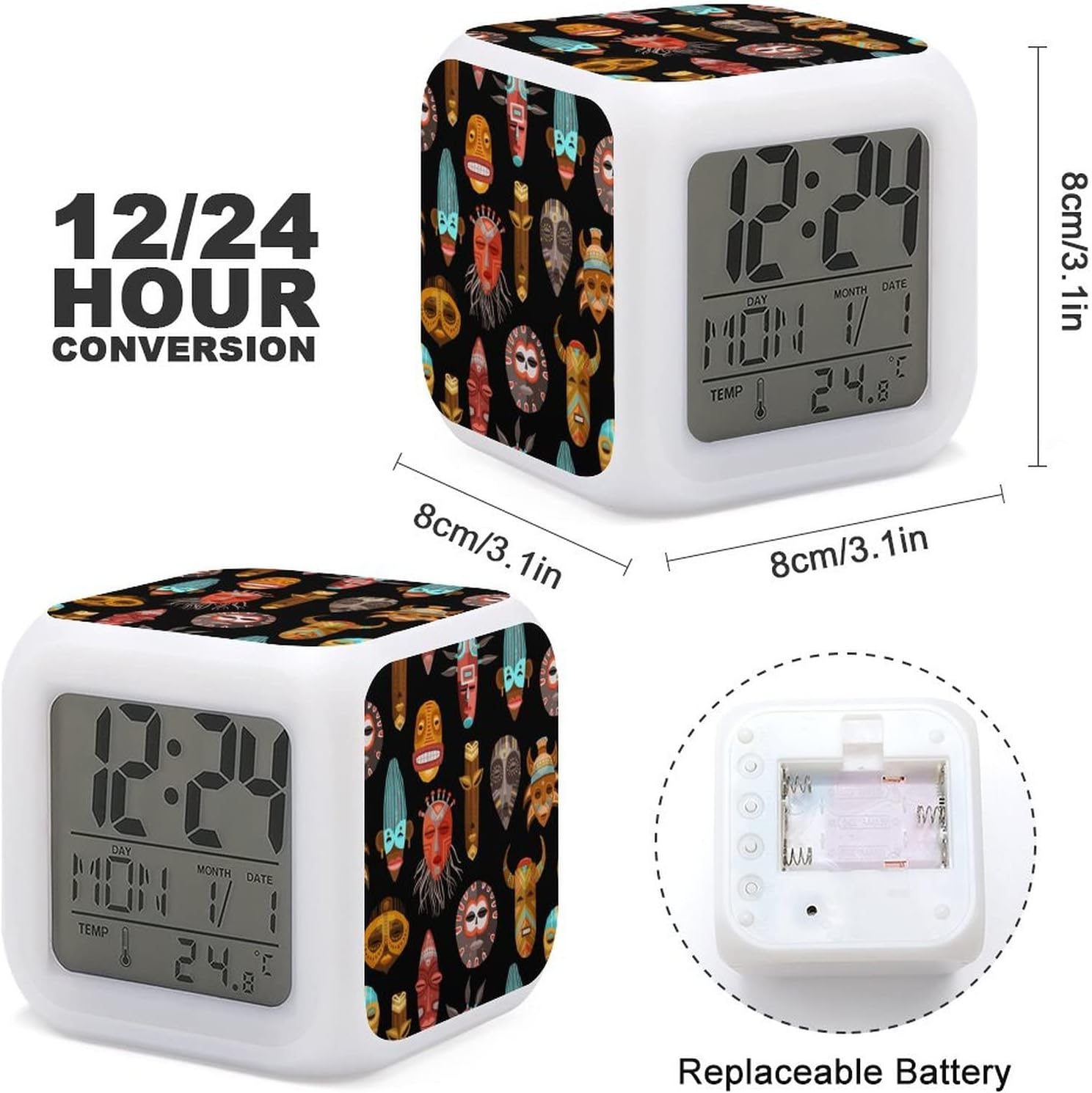 African Face Mask Digital Alarm Clocks Wake Up Clock with LED Seven Color Night Light for Birthday Gifts, Xmas Gift, Bedroom Decor