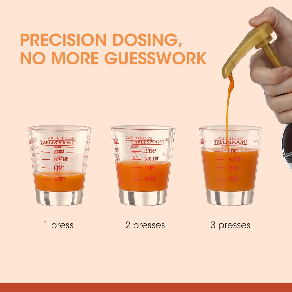 A Cleaner, Neater Solution: The dispenser pump cleanly draws liquid, preventing drips and keeping your bottle’s neck clean. The weighted, stable base of the shot glass is designed to resist tipping, protecting your counters from spills for less mess.