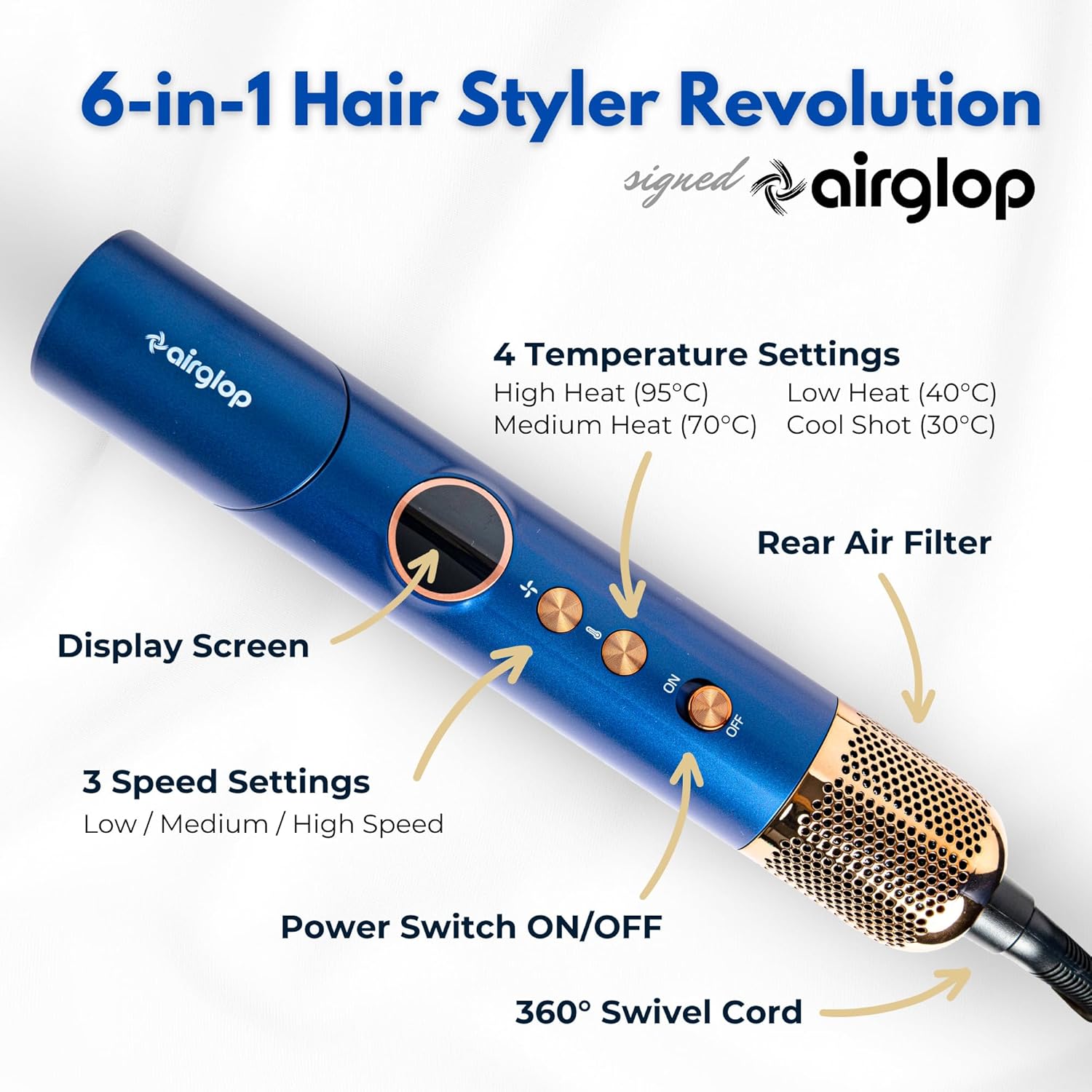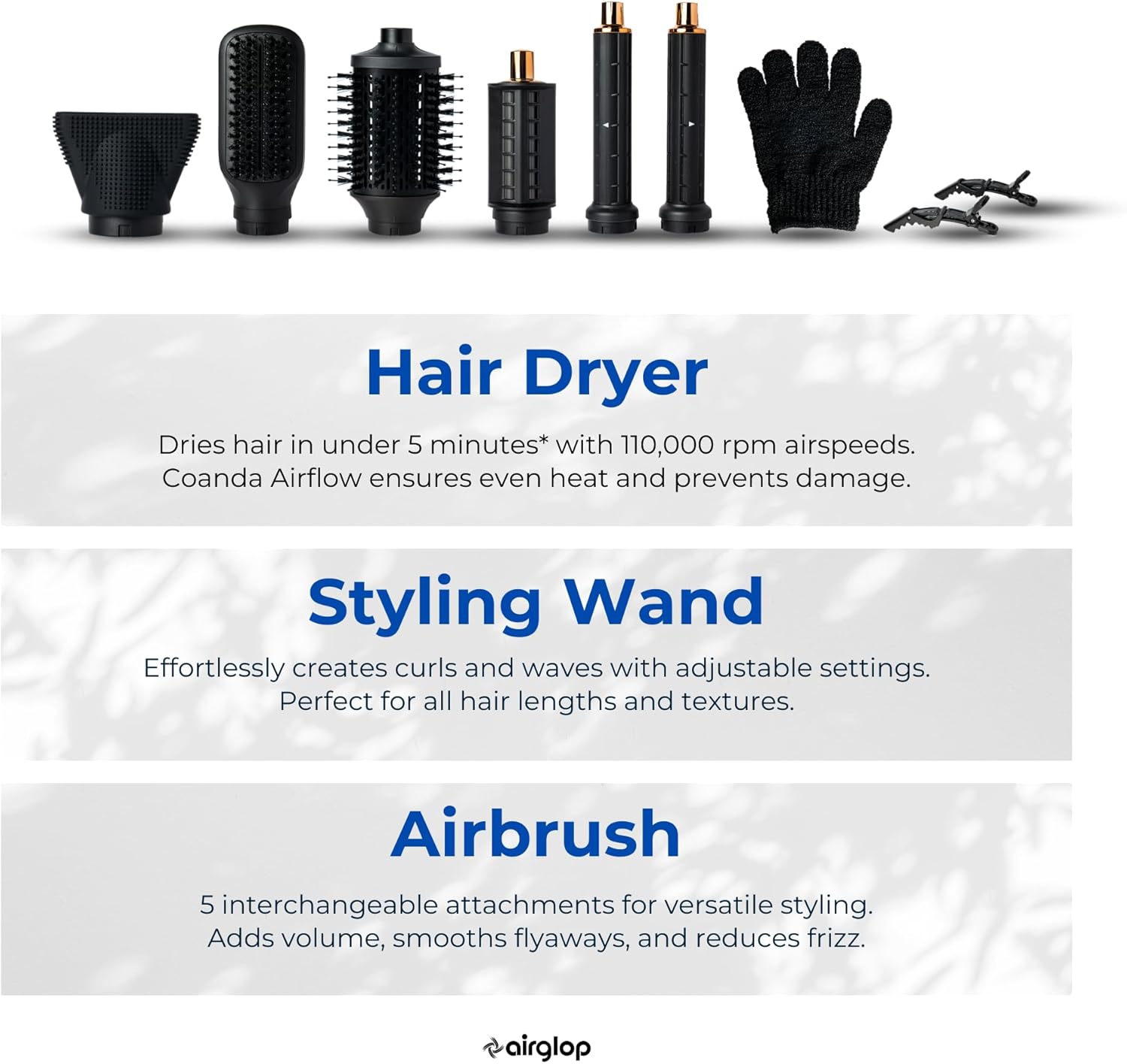 6 IN 1 HAIR STYLER SET – This versatile hair styler set comes with interchangeable attachments that connect to both the styling wand and hair dryer, allowing you to achieve a wide variety of looks for all hair types. The set includes 6 different styling tools for drying, straightening, curling, and adding volume. Featuring a high-speed brushless motor running at 110,000 RPM, the blow dryer generates powerful airflow up to 23m/s, helping to speed up drying, reduce heat exposure, and enhance shine and strength, ultimately cutting your styling time in half.