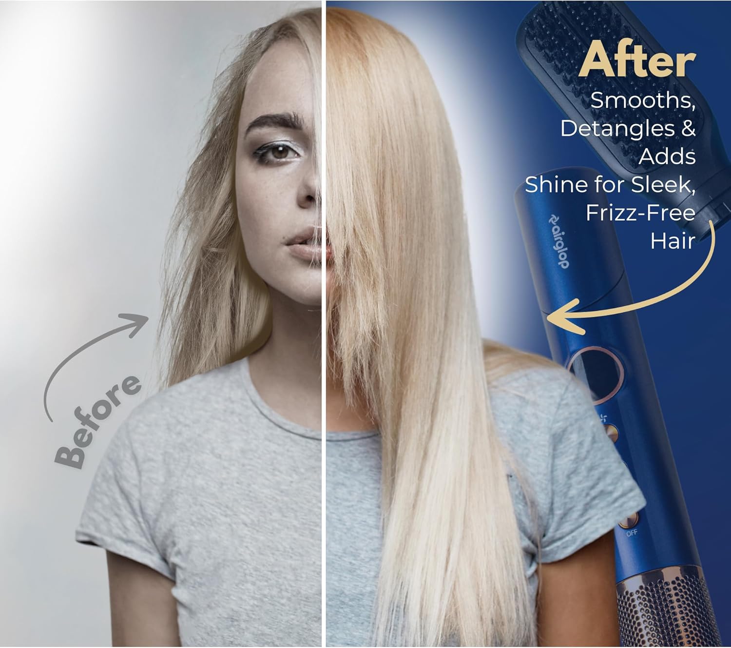 IONIZED CARE & KNOT-FREE BRUSH DESIGN – This hair dryer curler is equipped with temperature protection and a ceramic coating for even heat distribution. It also releases thousands of negative ions during the blow-drying process to smooth hair, boost shine, and improve strength. The brush head features nylon pins and tufted bristles, ensuring smooth, knot-free styling.