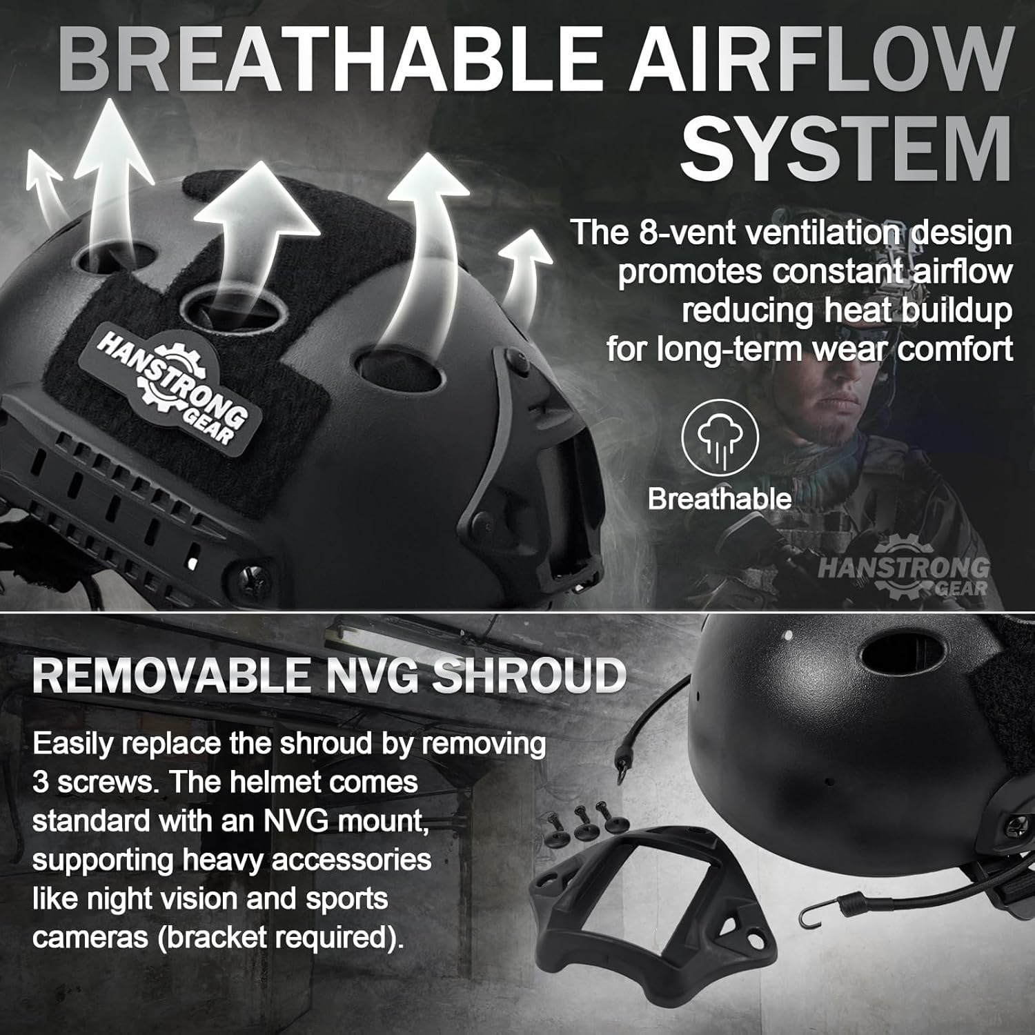 { Fast Helmet Design } :Lightweight gand durable, modeled after military-style bump helmets (Similar to PJ-style helmets used by special forces).