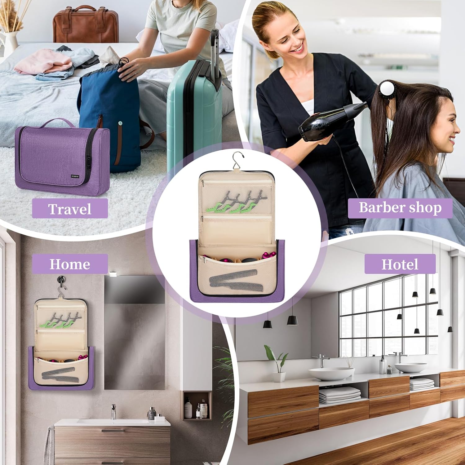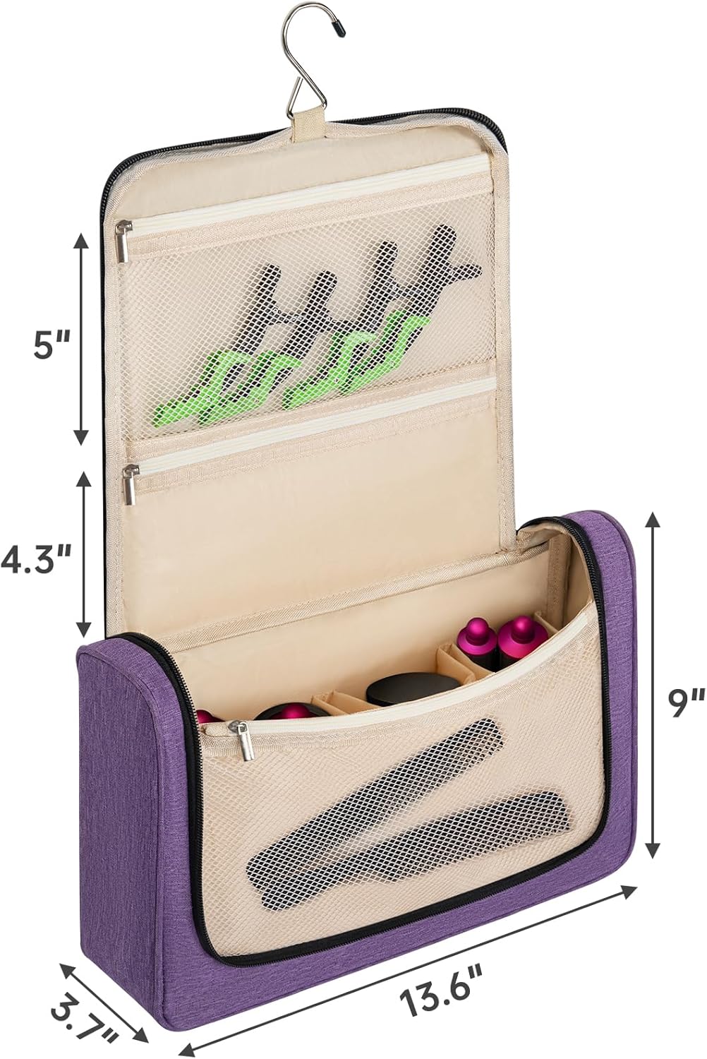 【Unique Design】Specially compatible with Airwrap styler, also compatible with Supersonic. 3 zipper pockets and 1 zipper back pocket for storing hair dryer attachments, hair salon essential oils, clips, sprays or other toiletries