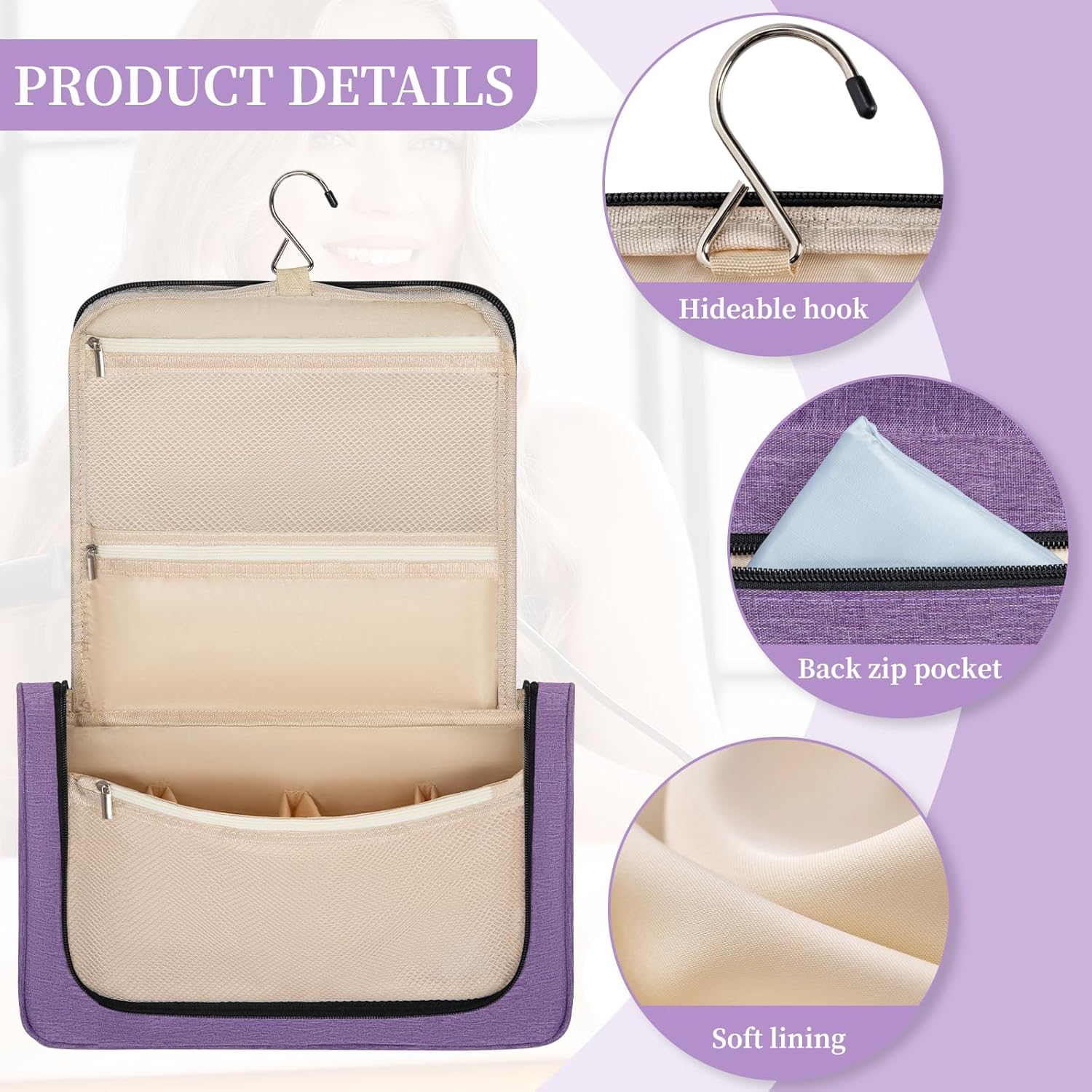 【Convenient】Front open design with two-way zipper for easy access. High-quality hooks are convenient for hanging on the wall, ordinary door handles or even tables. It can be hidden when not needed