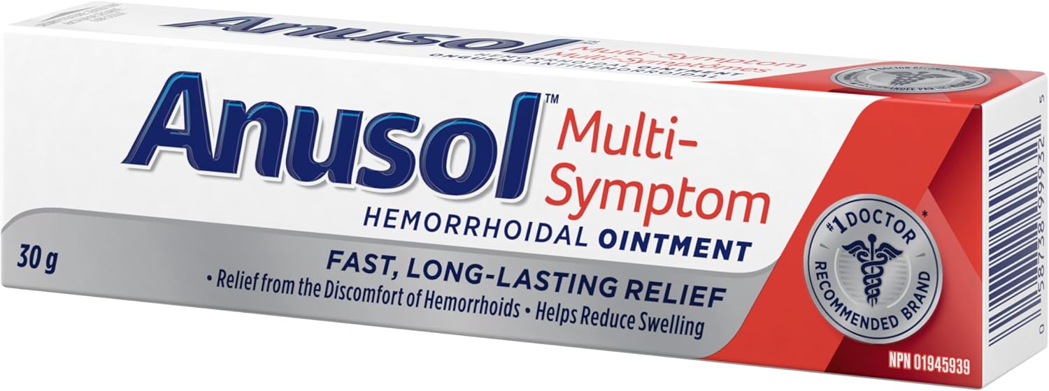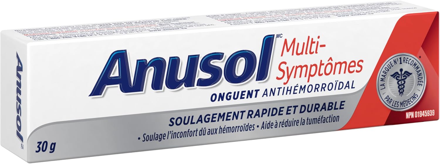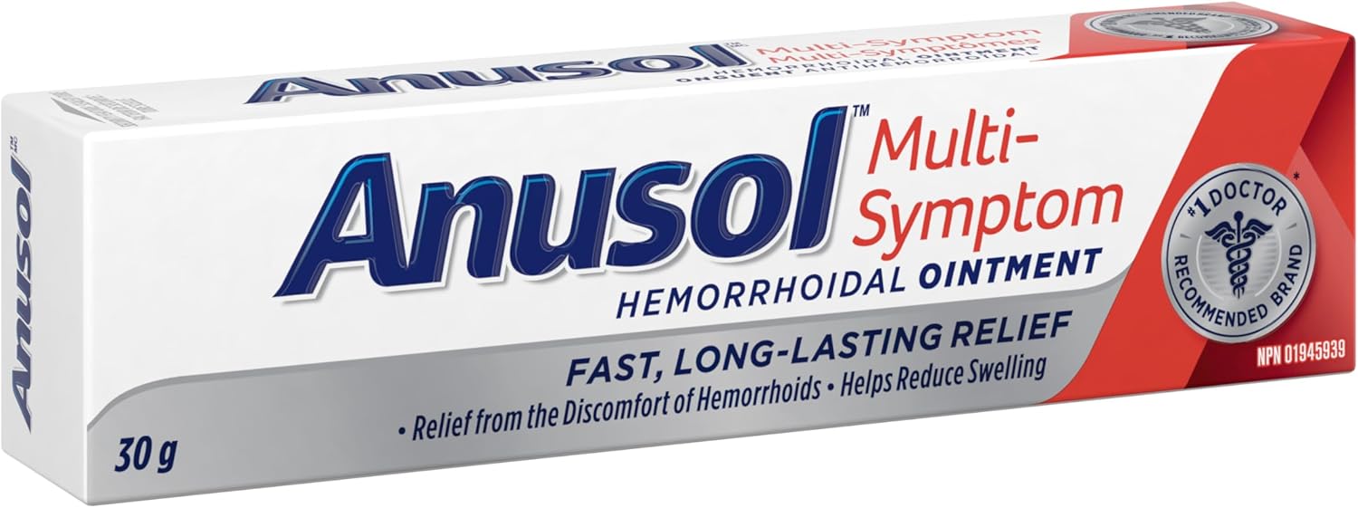 Anusol Multi-symptom ointment provides fast and long-lasting relief for the discomfort and swelling caused by hemorrhoids. Its gentle astringent reduces swelling, promoting healing. For comprehensive hemorrhoid care, start with Anusol Cleansing Wipes for cleansing and cooling. Then, use the multi-symptom ointment every 4 hours or as needed, and after each bowel movement to reduce and relieve symptoms. Voted as the number one hemorrhoid treatment by physicians in The Medical Post and Profession Santé 2024 Survey on OTC Counselling and Recommendations, Anusol is the doctor recommended brand for effective relief.* *Data on file 2024