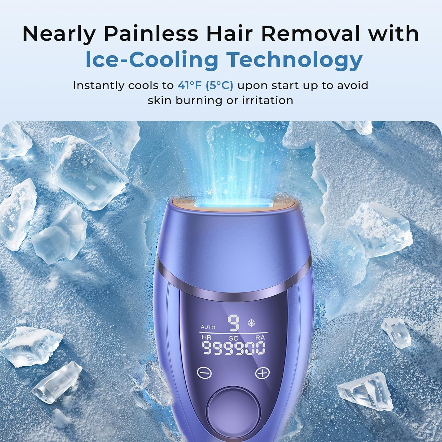 【Ice Cooling for Pain-Free Comfort】Patented ice-cooling system (41°F/5°C) instantly soothes skin during treatment. Perfect for sensitive areas like face, bikini line, and underarms. Ideal for beginners !