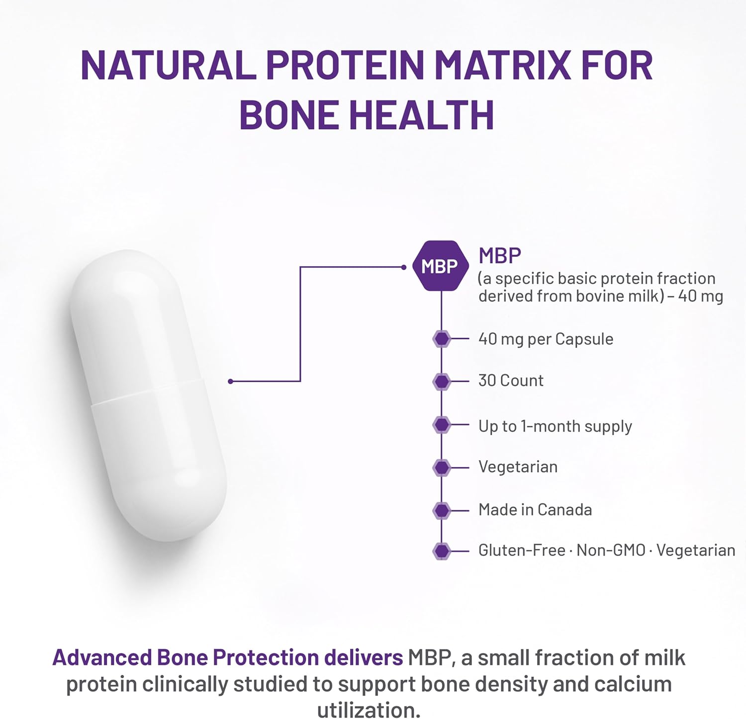 Strengthen and Protect: Empower your body’s natural resilience with this advanced bone support supplement. Its unique protein complex, MBP, works in harmony with calcium to help maintain strong bones. Feel secure in your ability to participate in physical activities and enjoy life to the fullest.