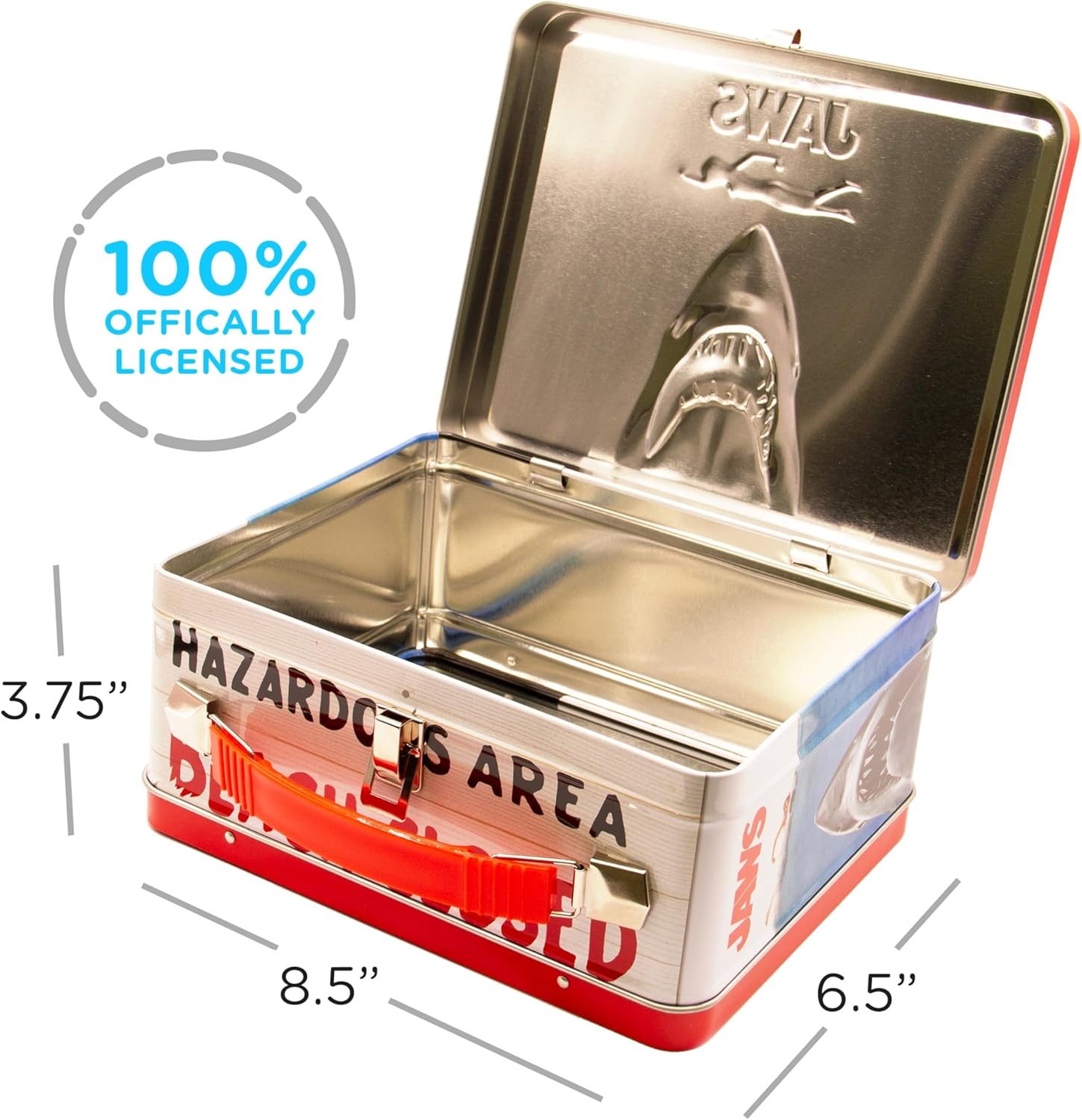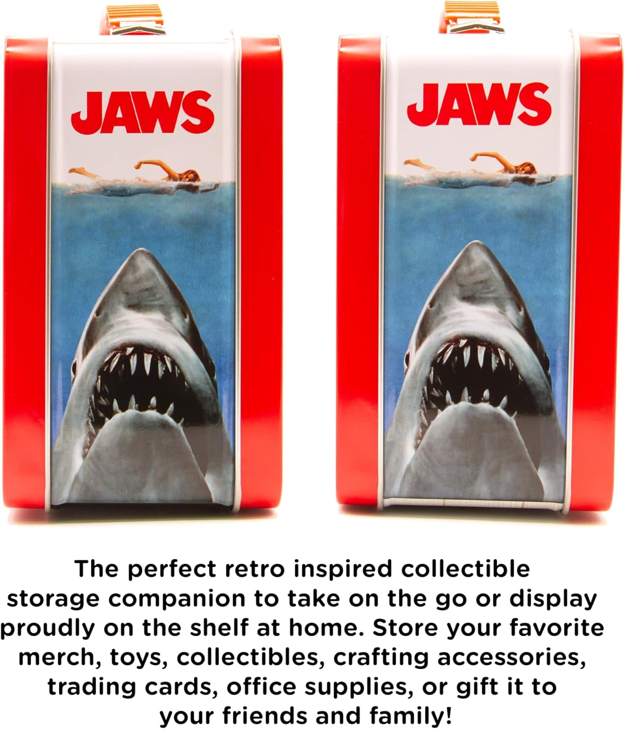 A GREAT ITEM FOR YOUNG AND THE YOUNG AT HEART: Nice design and sturdy construction is was you’ll get with this Jaws movie tin storage box. Beefy handle and latches with a fully embossed front cover. . SHOW YOU HAVE STYLE! This large tin fun box measures 6.8 x 8.6 x 3.9 inches | Includes designs on front, back, top and bottom | Embossed front cover | Ages 14+ | Not designed for food. LOOKING FOR JAWS MOVIE GIFTS? Loved by all, this Jaws movie Large Gen 2 Fun Box is the ultimate Jaws movie Gift for fans of all ages. Perfect gift for birthdays, white elephant, stocking stuffers and Winter Holidays 100% OFFICIALLY LICENSED JAWS MOVIE GIFTS AND MERCHANDISE: This Jaws movie tin storage box is designed by AQUARIUS and officially authorized. It’s the perfect piece of Jaws movie memorabilia to add to your collection.