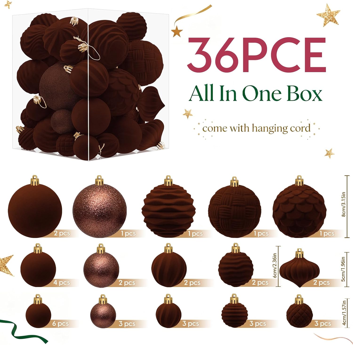 Unique Velvet Texture: Our ornaments stand out with their unique velvet texture and classic orange fall hues. Includes 18pcs small(1.57″/40mm), 12pcs medium(2.36″/60mm) and 6pcs large(3.16″/80mm)ball ornaments, the subtle elegance of these pieces makes them a versatile choice for any holiday theme.
