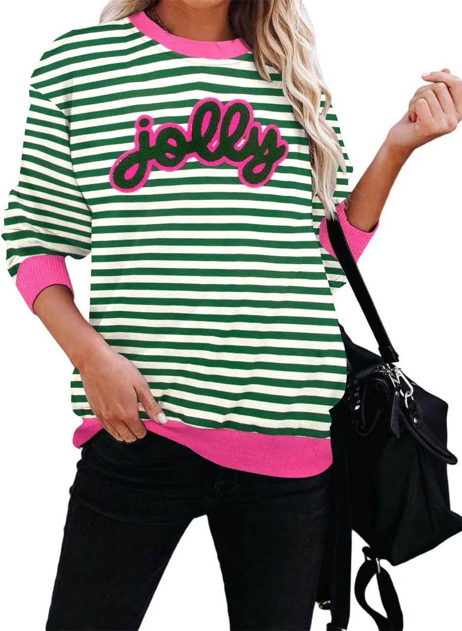 Women Christmas Sweatshirts Holly Jolly Christmas Sweatshirt Xmas Crewneck Sweater Pullover Tops