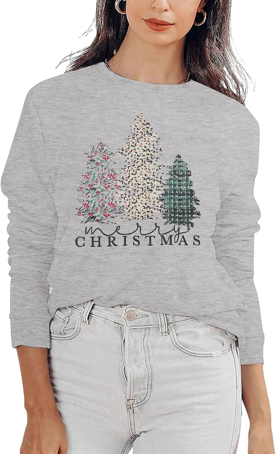 Christmas Sweatshirt Merry Shirts for Women Christmas Tree Pullover Casual Graphic Print long Sleeve Tops