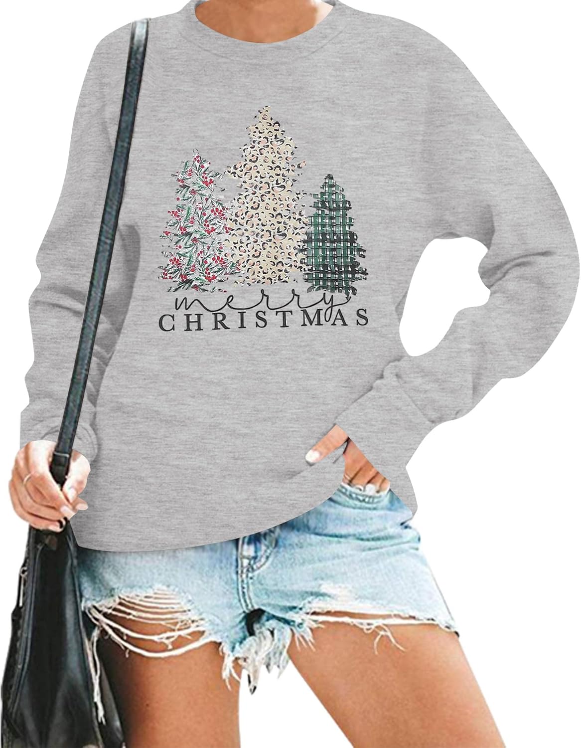 Christmas Trees Sweatshirt Women Plaid Leopard Graphic Long Sleeve Pulllover Tops