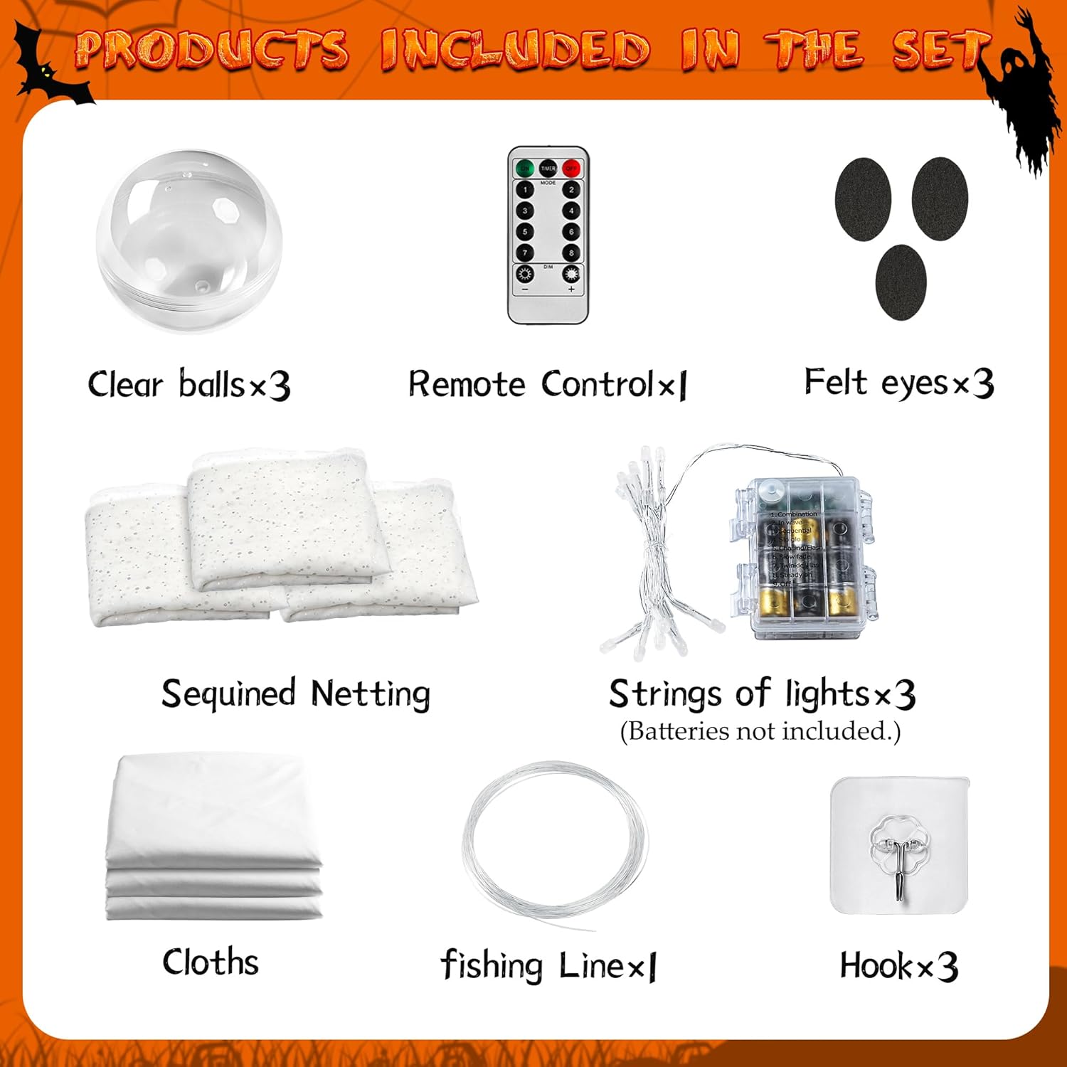 👻Remote-Controlled Timed String Lights: One of the best ways to set the mood is with lighting. They add a magical touch to the spooky ghosts. String lights with a remote-controlled timer make Halloween decorations more convenient and flexible. Place the spooky ghost decorations and string lights in room corners, outdoor courtyards, and front doors to create the perfect Halloween atmosphere.