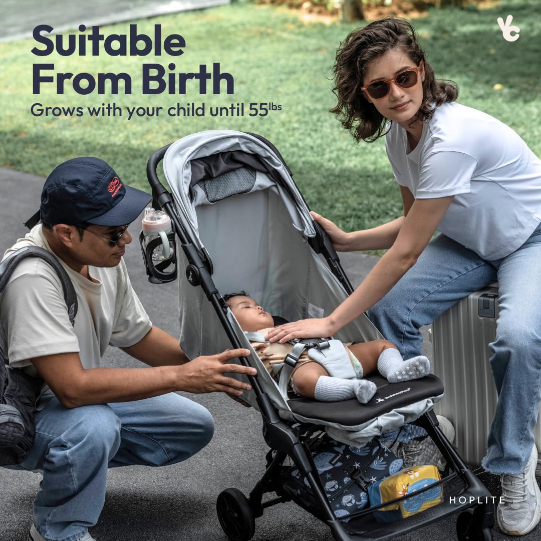Ready from Day One: Hoplite is the only ultralight strollers safe for newborns, featuring a 175° near-flat recline, footwell enclosure, and 5-point harness. The OEKO-TEX certified seat fabric is gentle on delicate skin and free from harmful substances. Hoplite grows with your child from their very first nap to their first big steps out in the world up to 55 lbs (48 months).