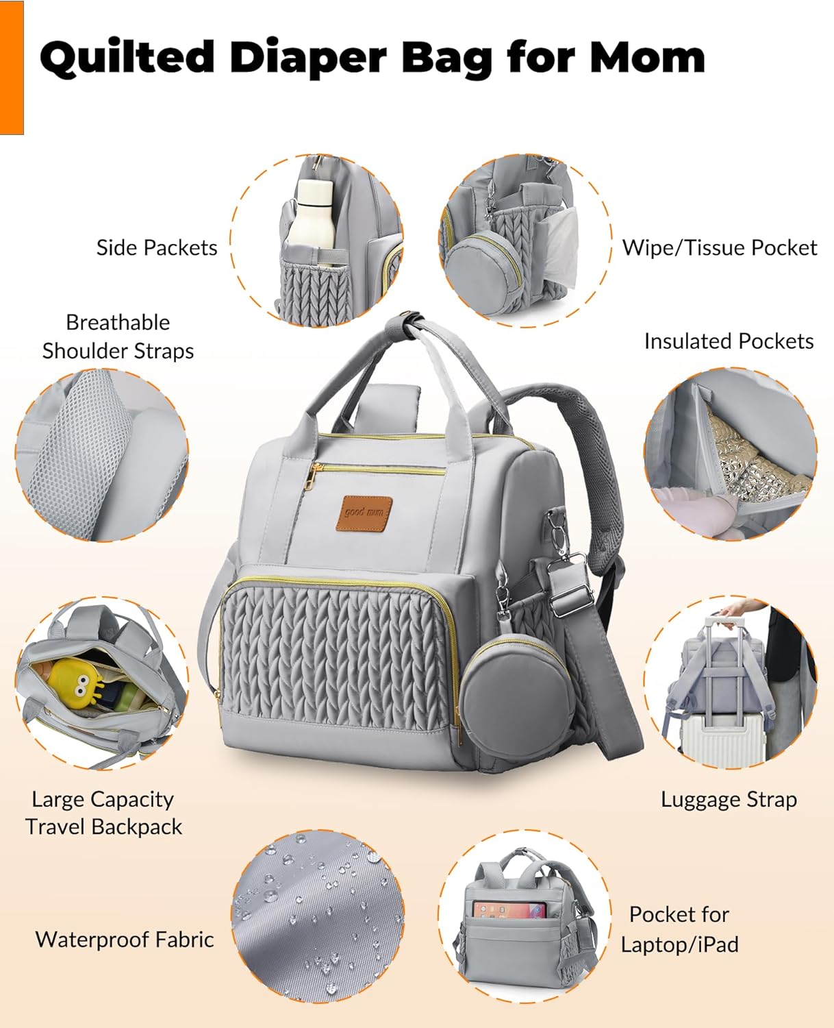【Lightweight & Durable Quality 】A minimalist look with delicate quilting looks excellent with any outfit. This baby diaper bag is crafted from soft, durable Taslan fabric that’s water-resistant, lightweight, sturdy, and easy to clean. It includes a portable changing pad, making it the perfect choice for moms that you’re sure to love.