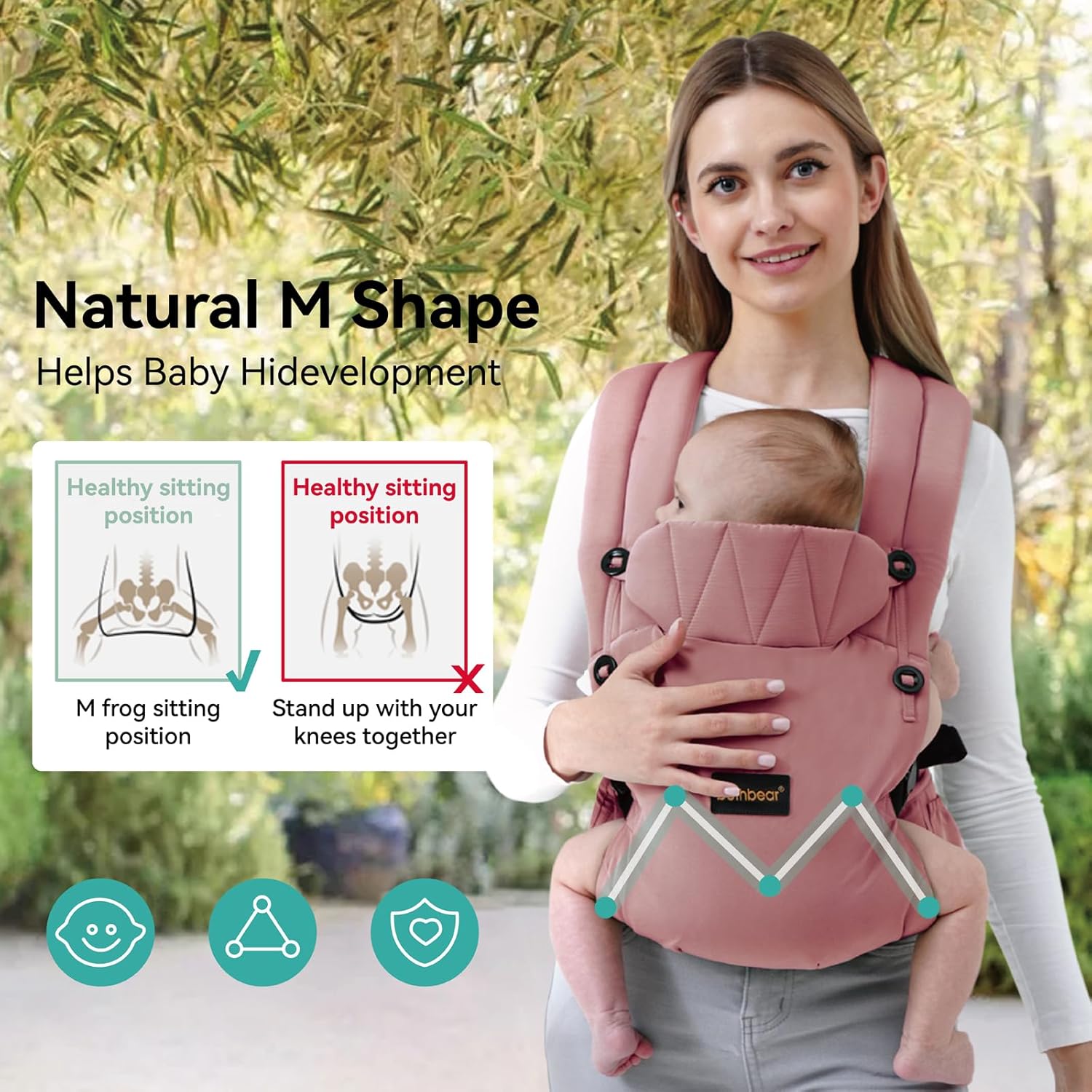 Thoughtful X-shaped Back Design:BethBear Baby Carrier employs a revolutionary X-shaped back design. This forward-looking feature distributes weight better and evenly for unrivaled comfort for both you and your little one.