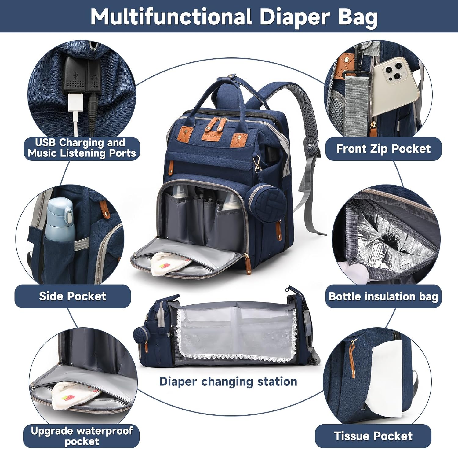 【Baby Bag USB Charging Port and Waterproof】 Our baby diaper bag is crafted from lightweight and waterproof polyester fabric. Includes spill-resistant and easy-to-clean lining. No need to worry about spilled milk or water. Additionally, it features a USB charging port and cable, allowing you to conveniently charge your phone (Power Bank Is Not Included).