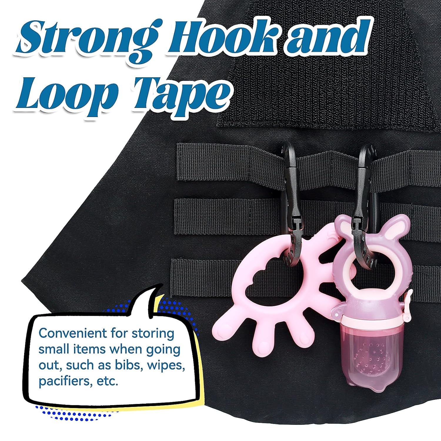 STYLISH & PRACTICAL – Attach your favorite patch to the hook and loop panel for personal style. The included carabiners keep essentials (bottles, pacifiers, bibs) within reach—no more digging through bags when needed.