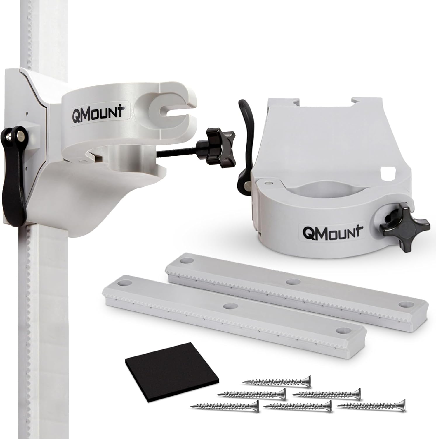 PRECISION RAIL AND LOCKING SYSTEM – Designed for hands free use. QMount uses a padded clamp and heavy duty lever to secure the position. Compatible with various handle diameters and supported by strong hardware and attachments for massage guns.