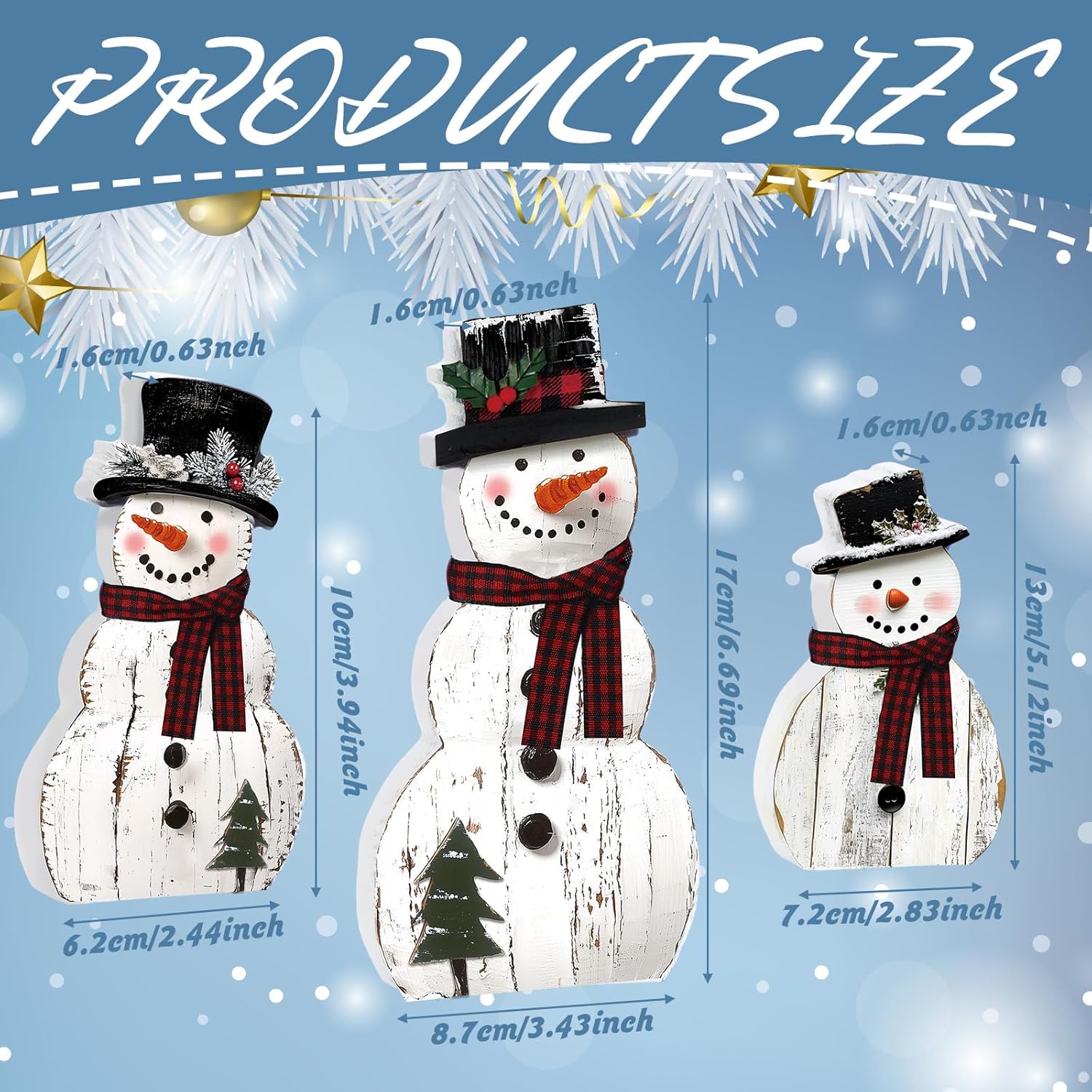 Sufficient Quantity: this set includes 3 charming wooden snowman centerpieces, meticulously packed to arrive in pristine condition; Perfect for creating cohesive Christmas table decorations across mantels, dining tables, or tiered trays