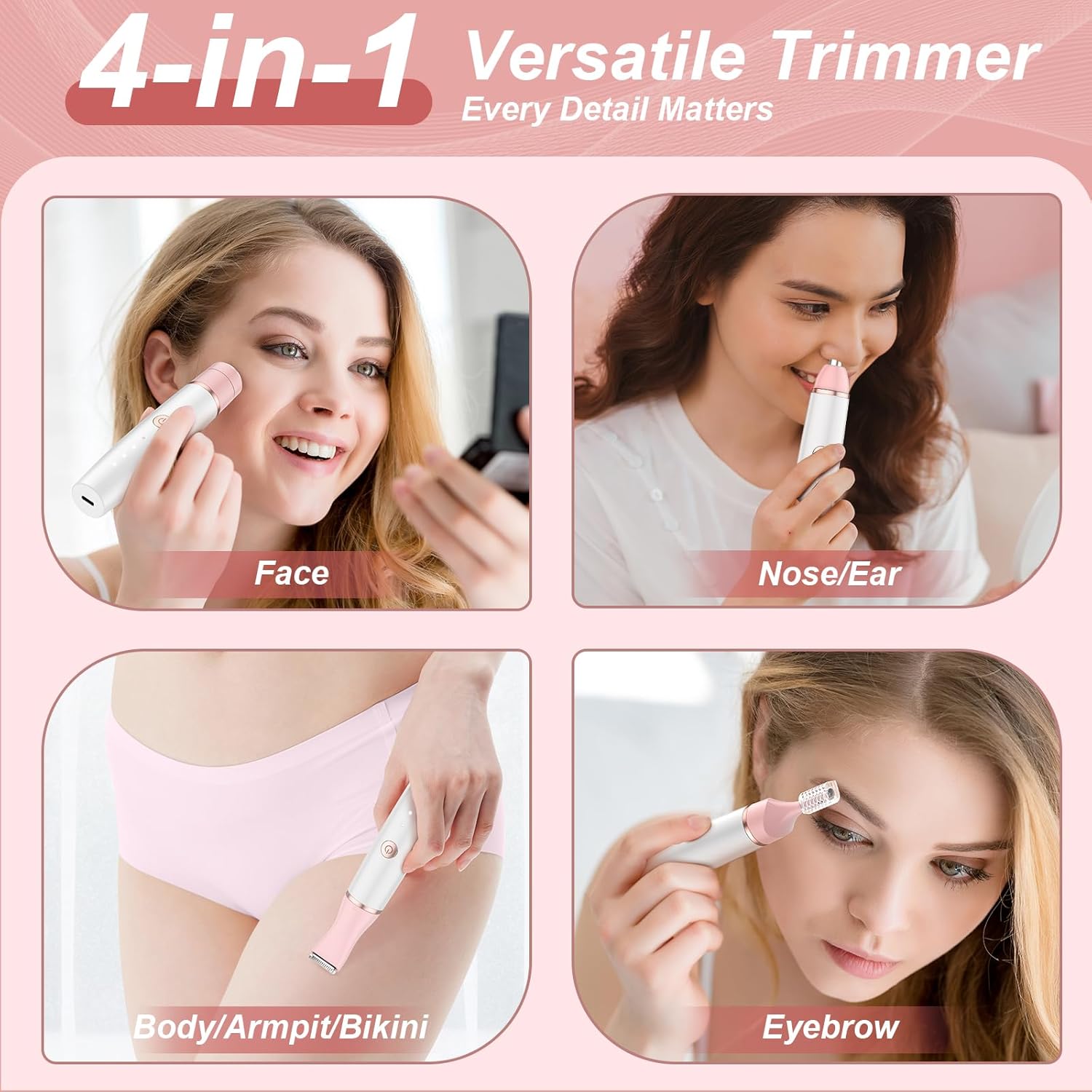 It includes a bikini trimmer, nose hair trimmer, facial hair remover, and eyebrow trimmer— a 4-in-1 design.