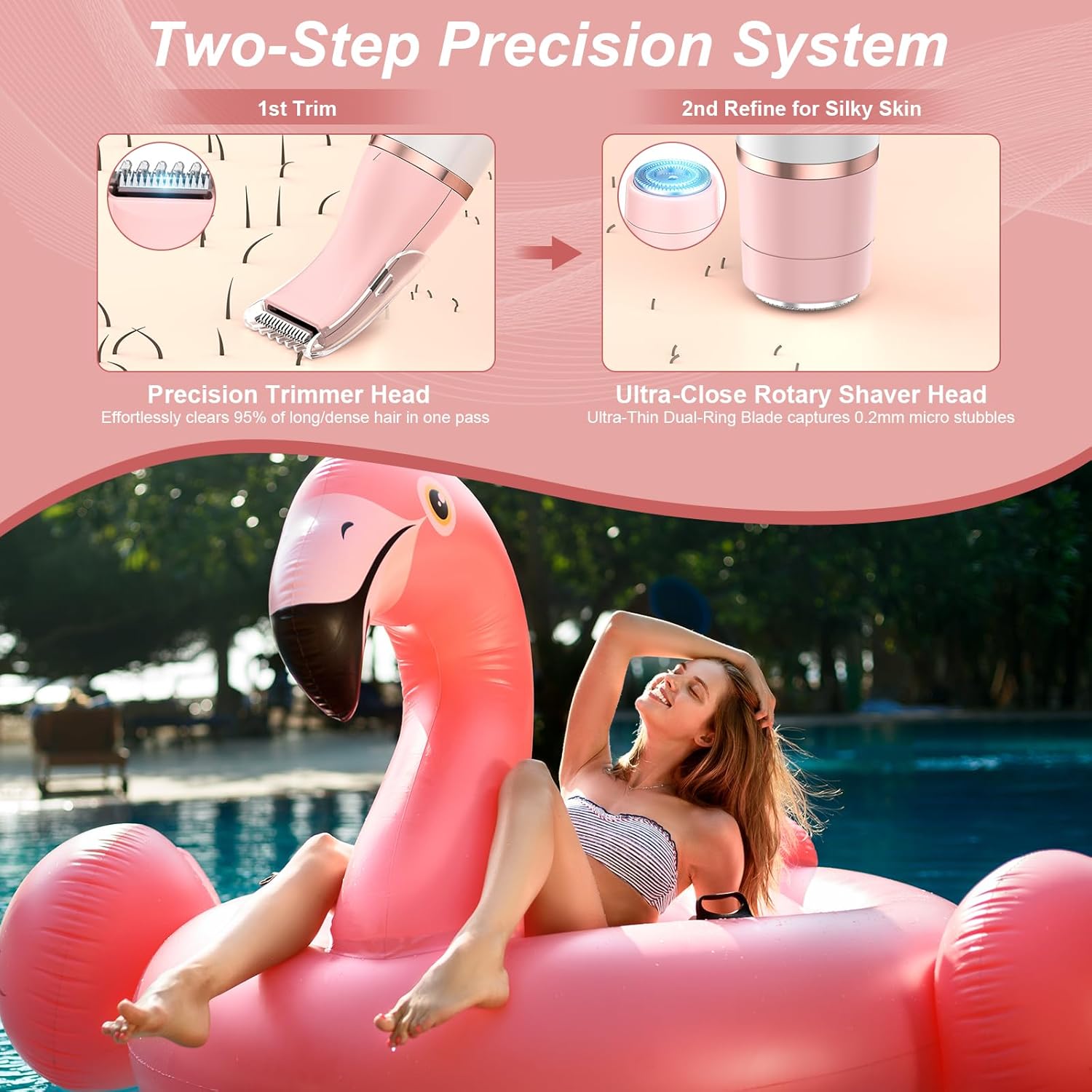 Wet & Dry Use Shaver for Women: Designed for both dry and wet shaving, this pubic hair trimmer for women is safe to use in the shower or with shaving cream. The IPX6 waterproof design ensures easy cleaning under running water. (Note: The charging base is not waterproof and should not be submerged.)