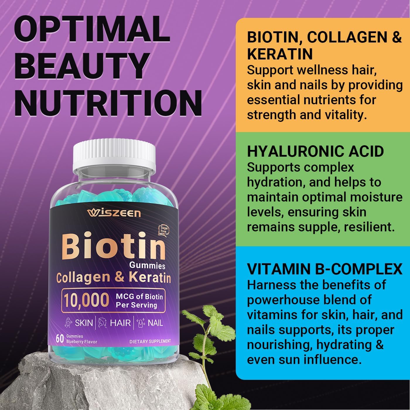 Biotin, Collagen & Keratin Complex – The biotin gummies contain potent biotin 10000mcg, Collagen 300mg and Keratin 30mg to naturally support your wellbeing and beauty. These biotin vitamins are your go-to for stronger nails and he✰lthier hair, reducing breakage, and strengthening brittle nails.