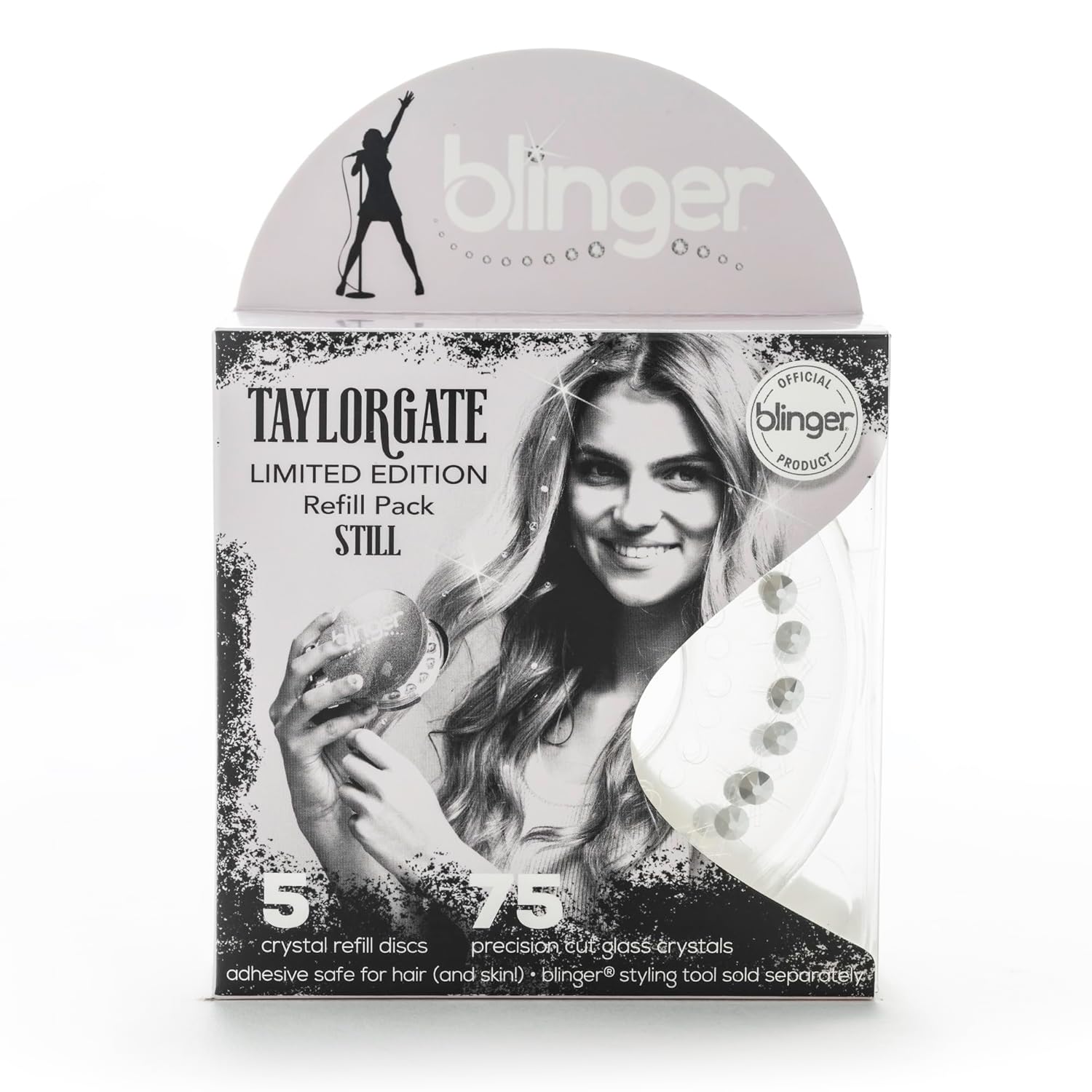 Limited Edition: Get your hands on this exclusive Refill Pack from blinger, featuring 75 precision-cut glass crystals (5 discs) in a brilliant Silver shade to complete your concert-ready sparkle.