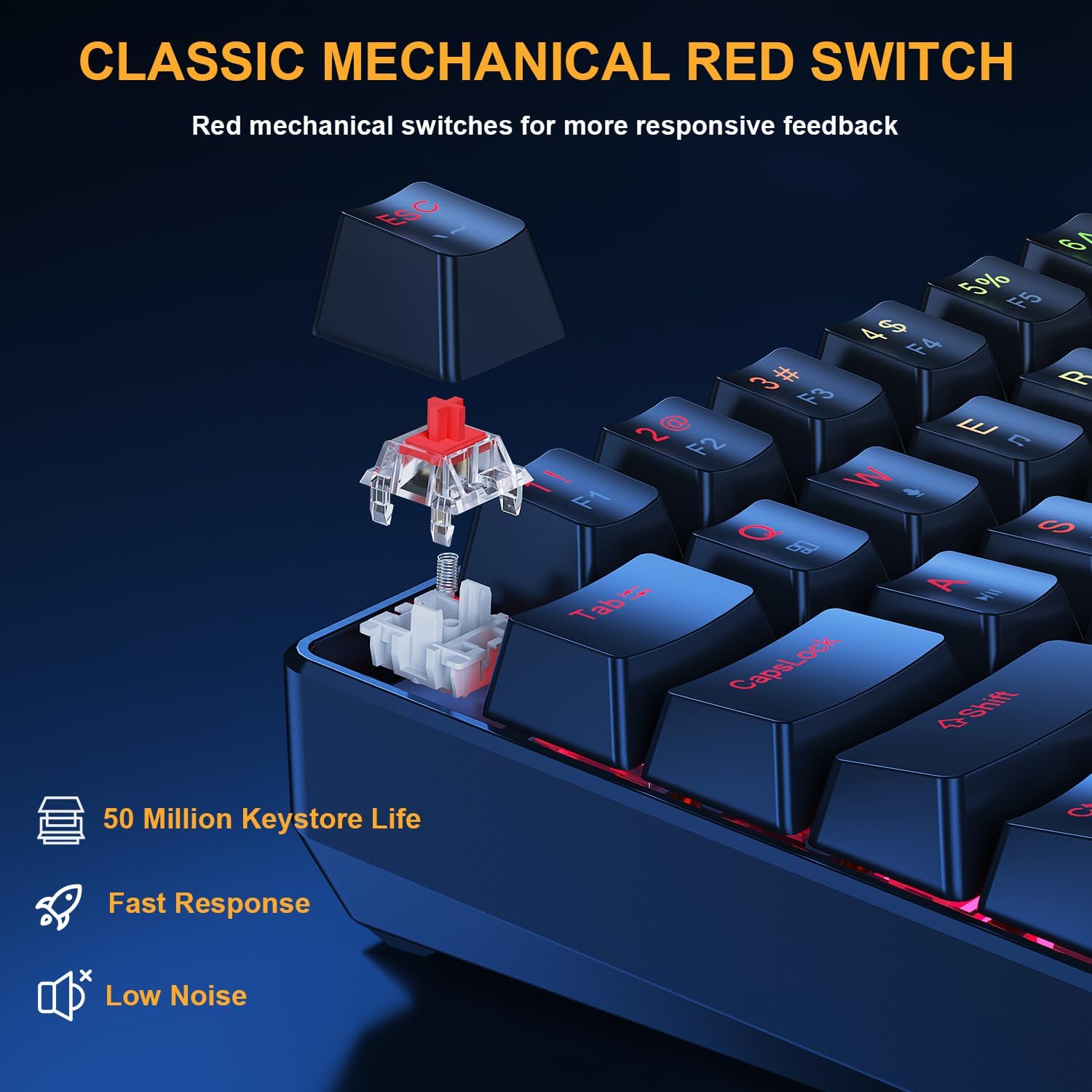 【Mechanical Red Switches 】Experience ultra-smooth, linear keystrokes with quiet red mechanical switches—ideal for fast-paced gaming and silent typing. With no tactile bump, they offer lower resistance and quicker response, helping you stay one step ahead in every game or task.