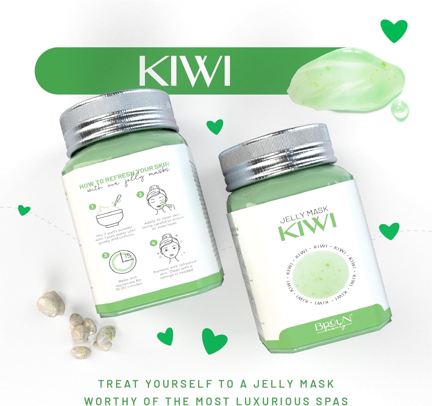 BRÜUN Peel-Off Kiwi Jelly Mask for Face Care – A 23 fl oz Rubber Jar for 30 to 35 Treatments – A Skin Care Moisturizing Gel Mask of Spa Set for Men, Women and Adults