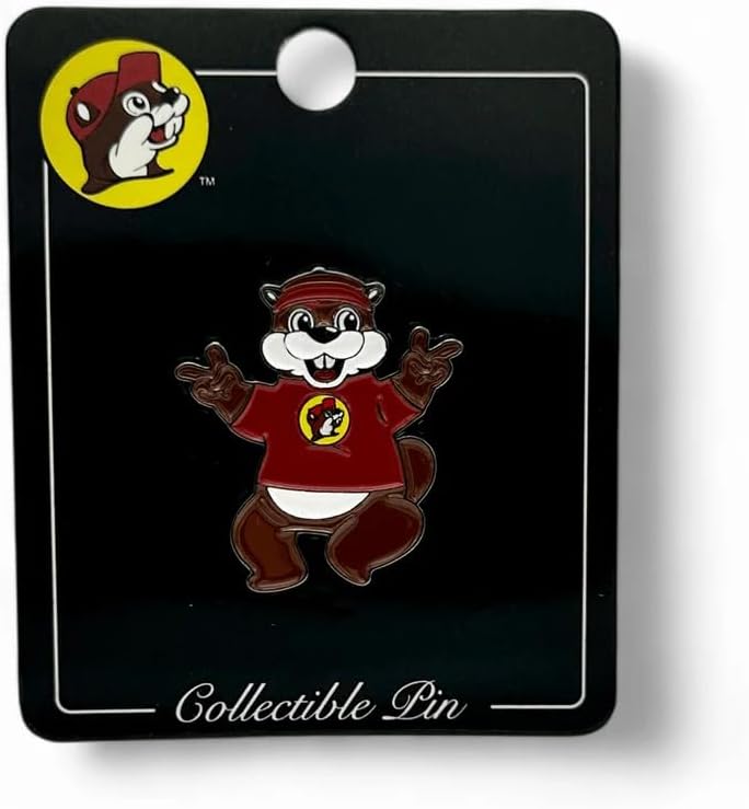 Add a playful touch to your collection with this charming enamel pin featuring the beloved mascot from Buc-ee’s. The pin showcases a cheerful brown beaver character wearing a vibrant red shirt adorned with the iconic company logo. This high-quality collectible pin captures the mascot’s signature friendly expression and animated pose with arms outstretched in welcome. Perfect for decorating backpacks, lanyards, jackets, or pin displays, this officially licensed merchandise lets you show your appreciation for this popular brand. The detailed enamel work brings the character to life with precise coloring and clean lines. Each pin comes individually packaged to maintain its pristine condition. Whether you’re a dedicated pin collector or simply want to carry a piece of road trip nostalgia with you, this delightful accessory makes for a fun and memorable keepsake.