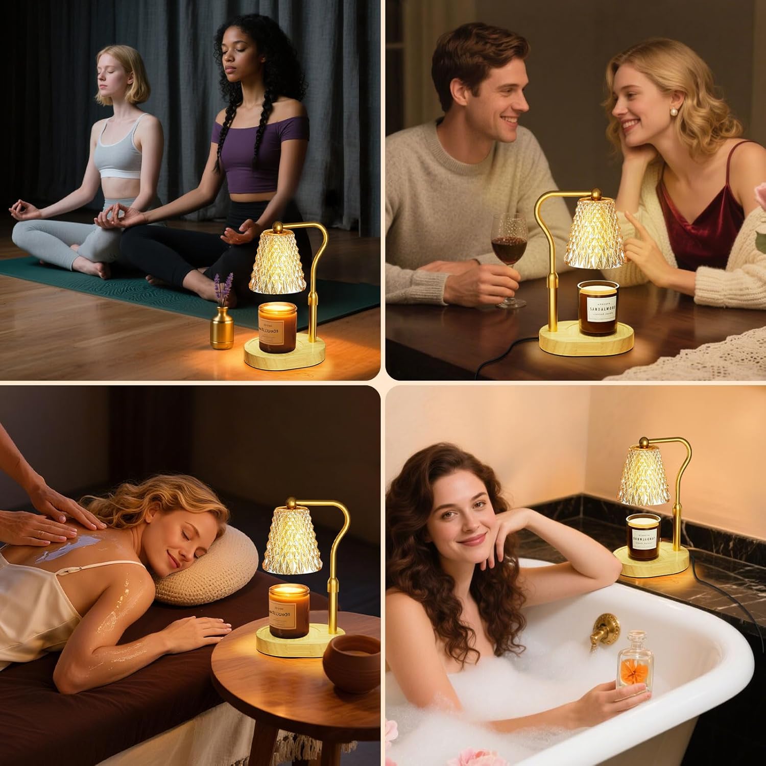 【4-speed Dimming Control for Fragrance Diffusion Rate】 This vintage lamp features a controllable switch with four brightness settings (25%/50%/75%/100%) to regulate the melting speed of scented candles. Small lamps precisely adjusts brightness (temperature) based on candle size and wax type to achieve optimal fragrance diffusion. Home decor aesthetic effortlessly adapts to diverse scenarios like yoga, reading, parties, work, and sleep.