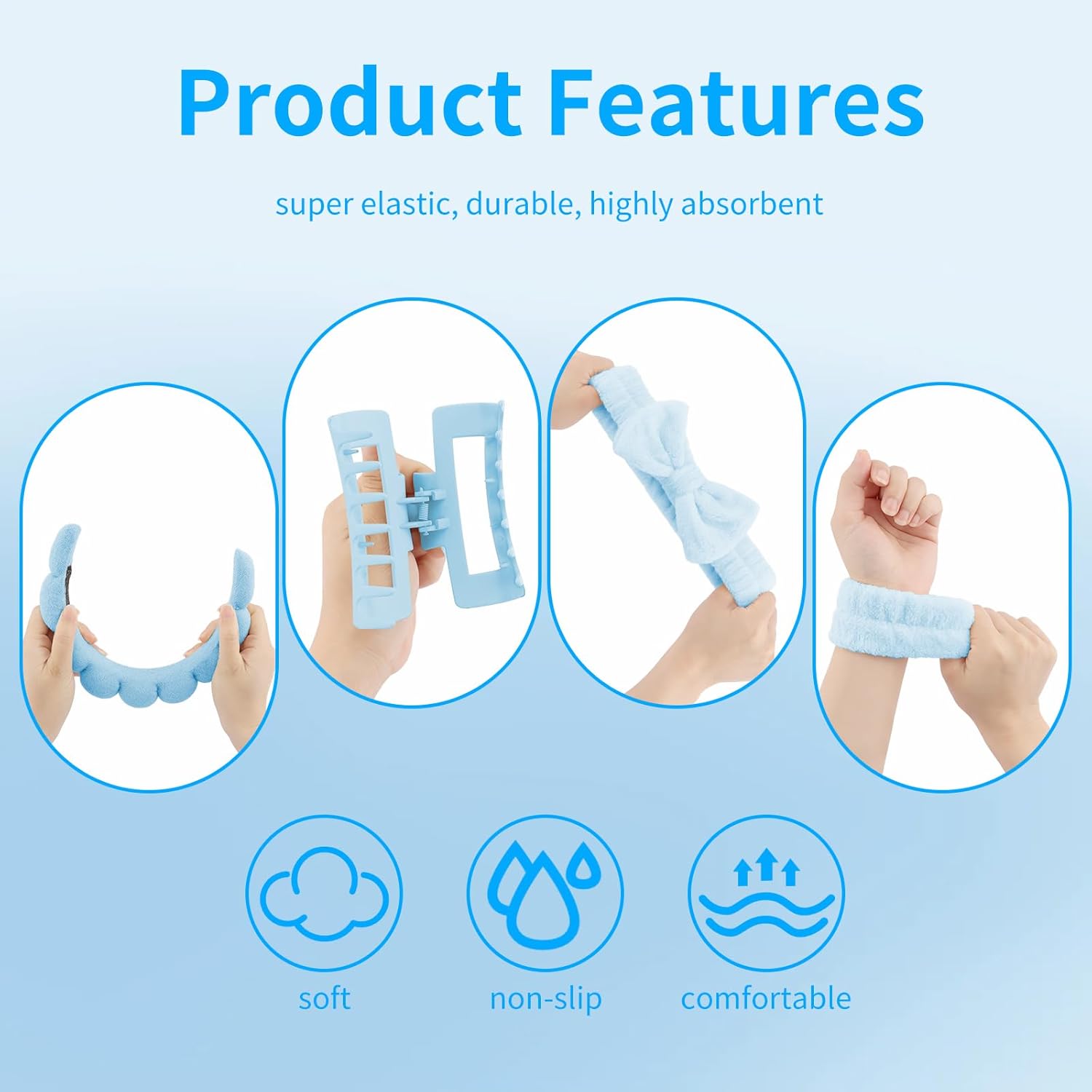 PRACTICAL COMBINATION: There are two different styles of makeup headbands to keep your hair away from your face, and two pair wristbands to keep your sleeves from getting wet during face washing.Hair Clip can hold your thick or thin hair for face washing or daily use.