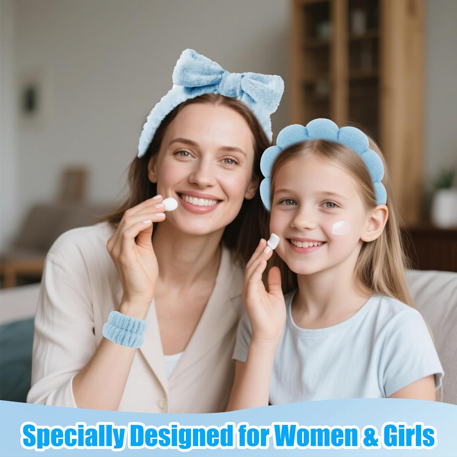 SOFT AND COMFORTABLE: The bow headband and wristbands are made of coral fleece, the cloud headband is made of sponge and 100% cotton terry cloth fabric, soft and skin-friendly, highly absorbent,and very comfortable to wear.