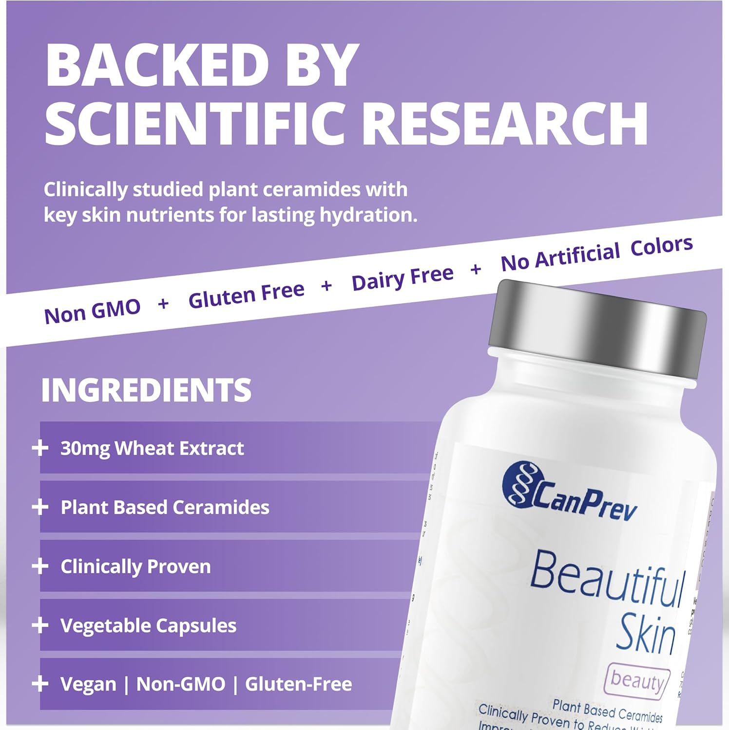 Clinically tested wrinkle reduction: Formulated with plant-based ceramides and wheat extract (Triticum aestivum), this skin supplement is scientifically tested to improve skin texture, promoting a smoother appearance.