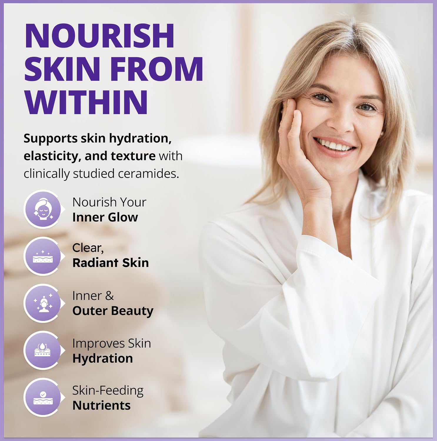 Plant-based beauty: Made from plant-based ingredients and free from magnesium stearate and microcrystalline cellulose, this formula acts as a ceramides moisturizer, supporting your skin’s natural moisture barrier.