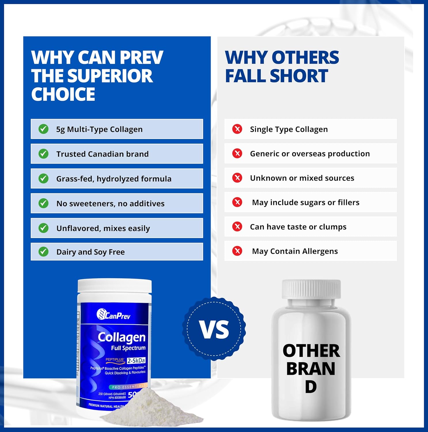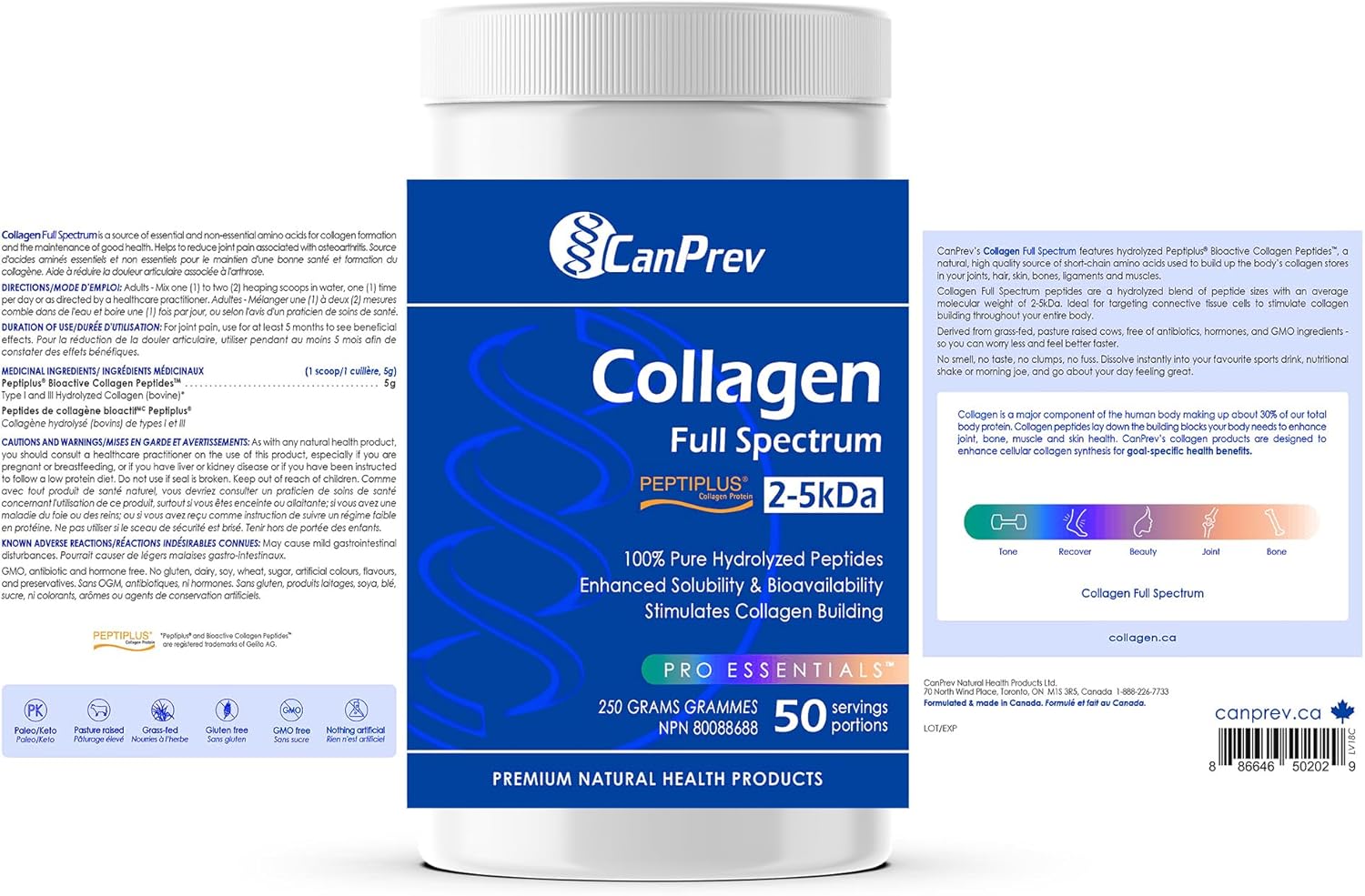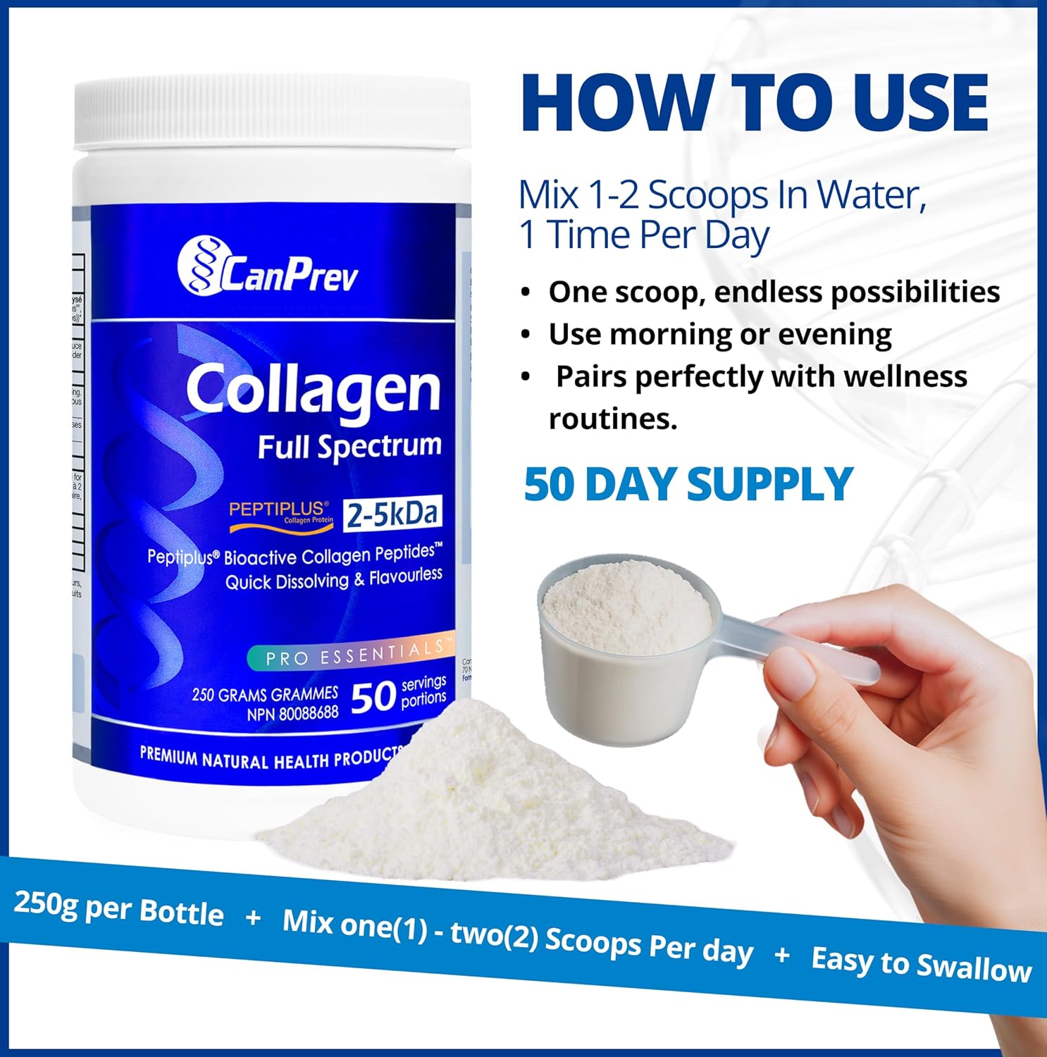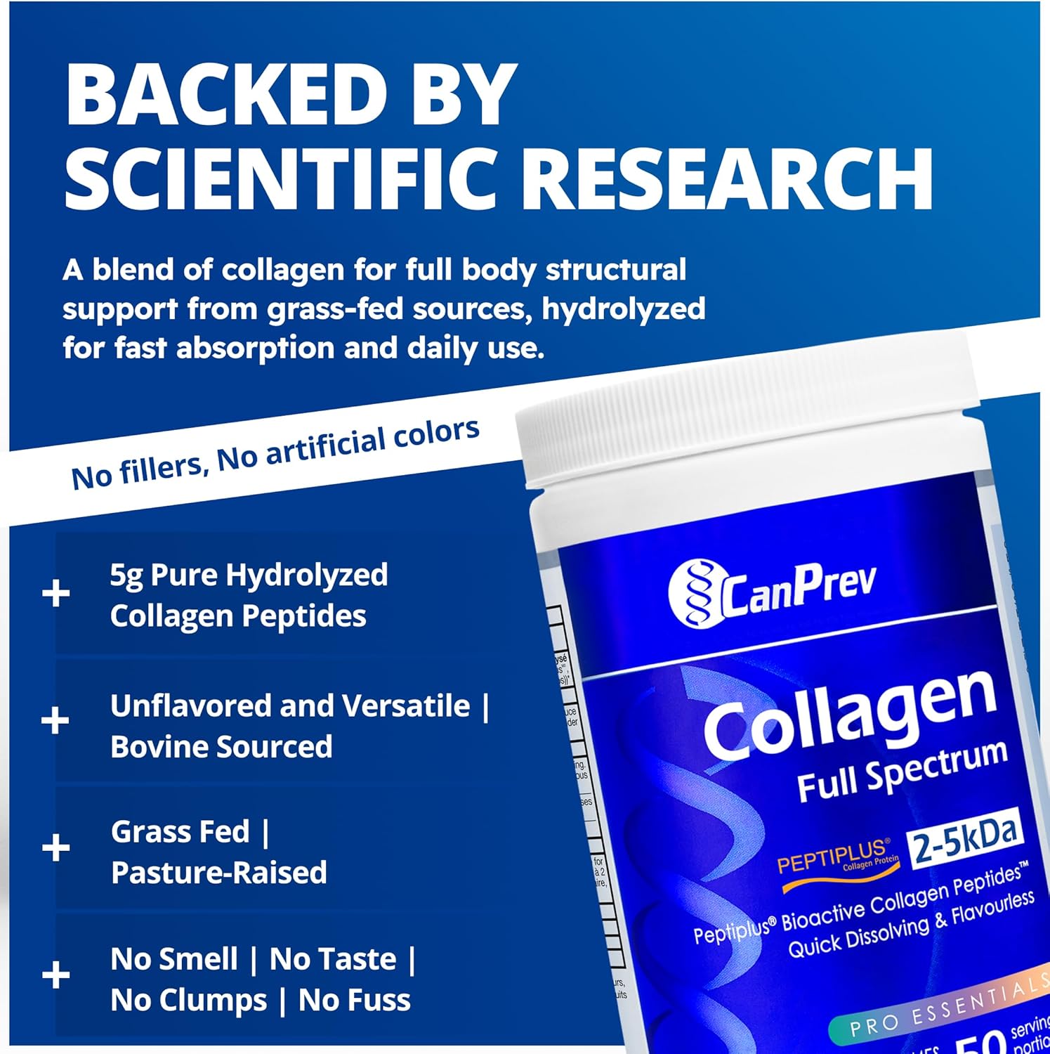 CanPrev Collagen Full Spectrum Peptiplus, 250g Powder 50-Servings – Pure Hydrolyzed Peptides, Optimized for Easy Mixing & Absorption – Bovine Collagen Supporting Joint, Hair, Skin, Nail and Bone