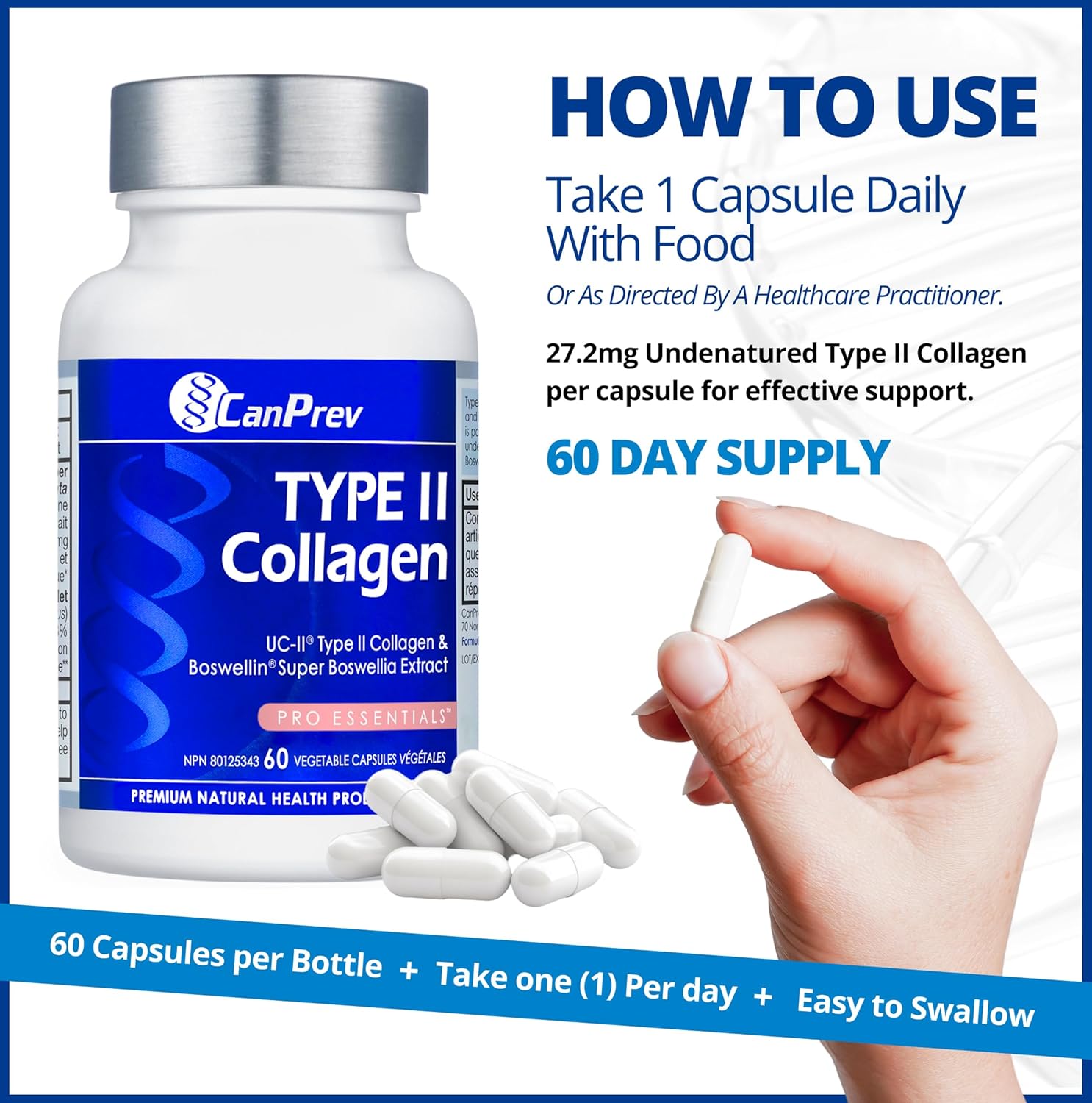 Bone Health – Incorporate CanPrev’s TYPE II Collagen into your daily routine to support bone strength and integrity, an essential aspect of maintaining an active lifestyle.