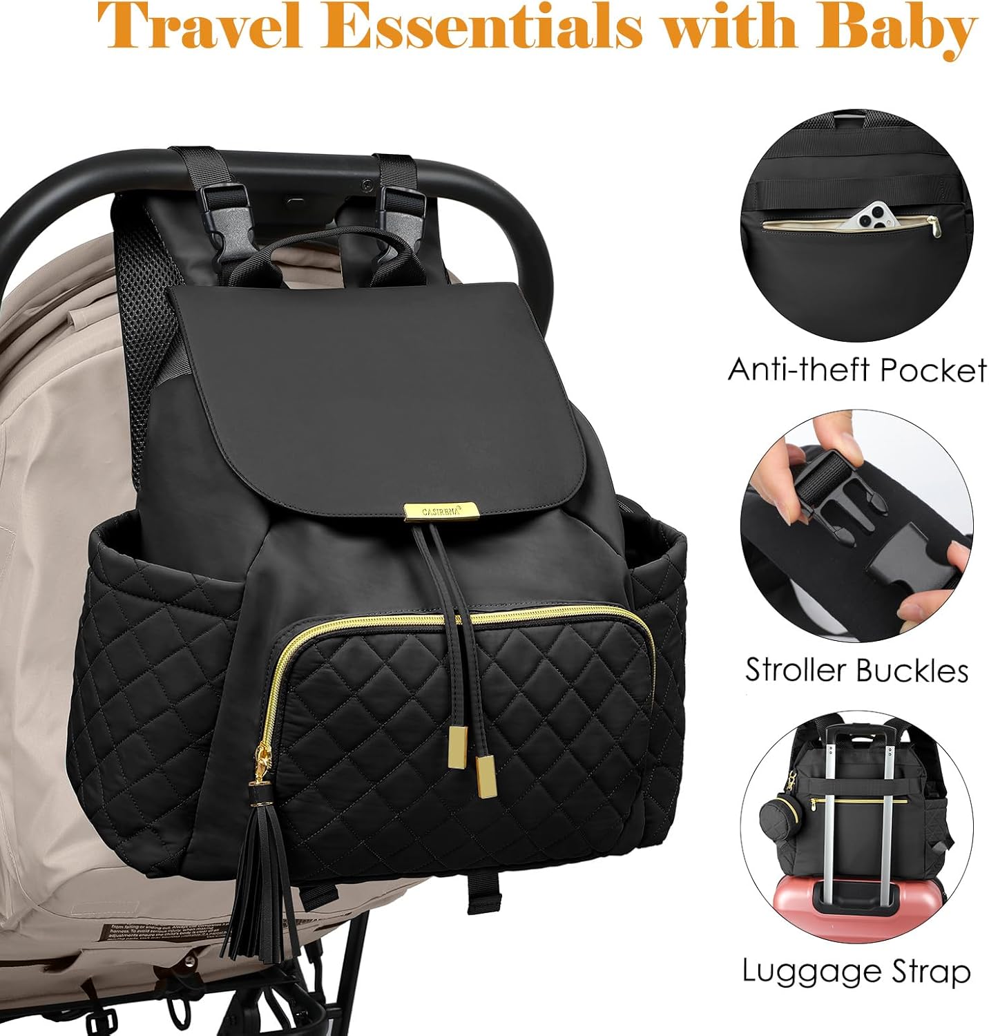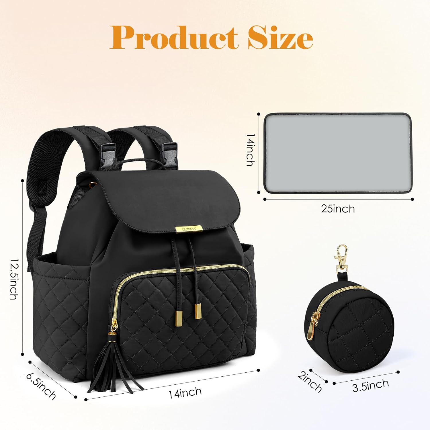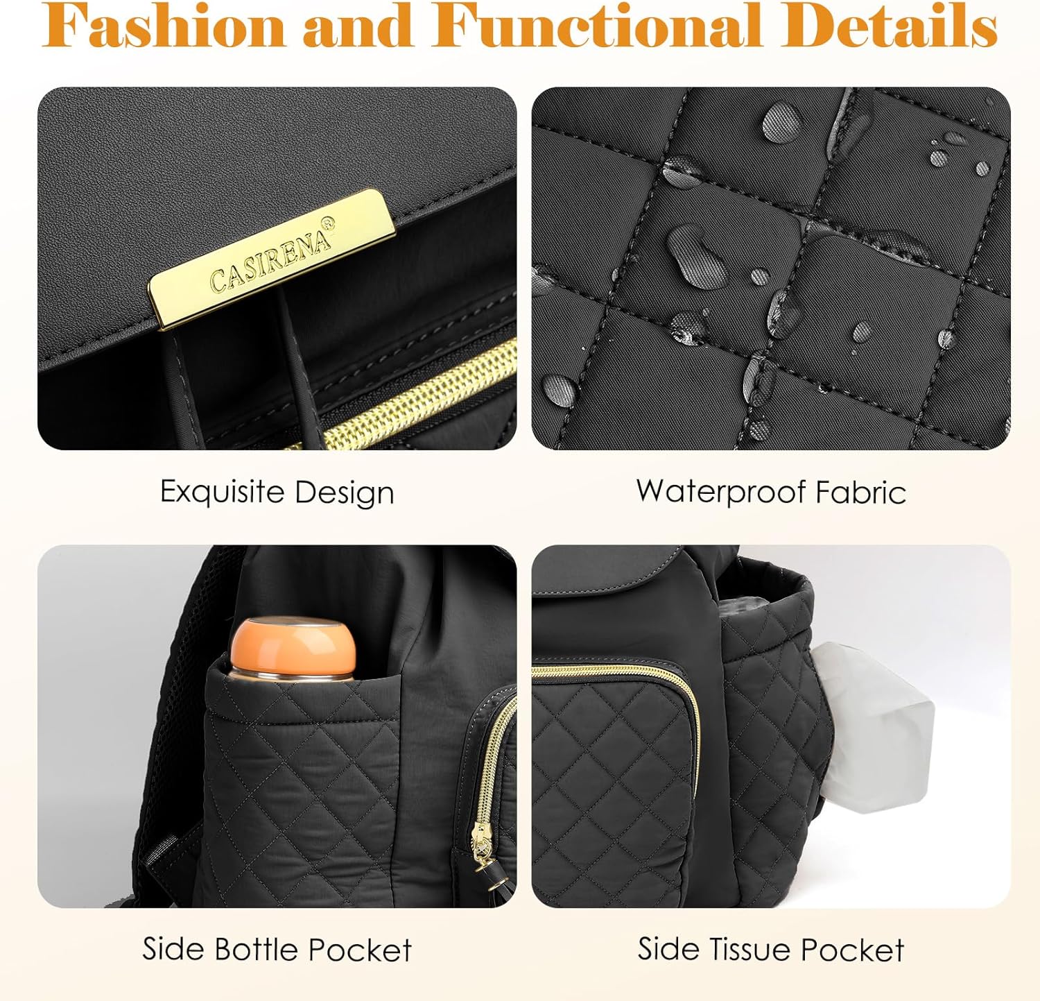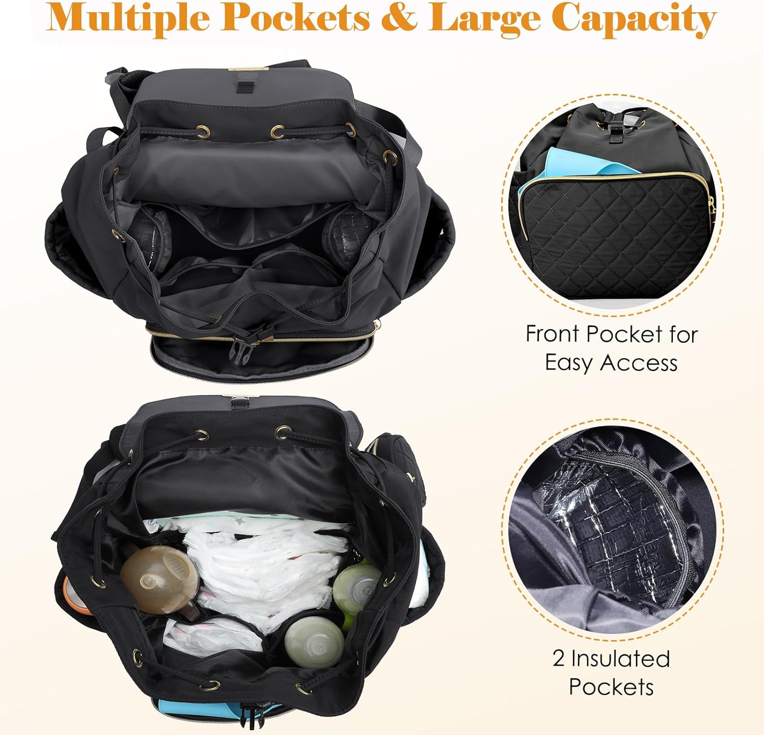 Stylish & Functional:Elevate your mom style with this chic backpack. Designer-inspired faux leather flap meets stylish quilted body with adjustable drawstring, accented by gleaming metallic hardware. Practical yet undeniably fashionable—perfect for moms