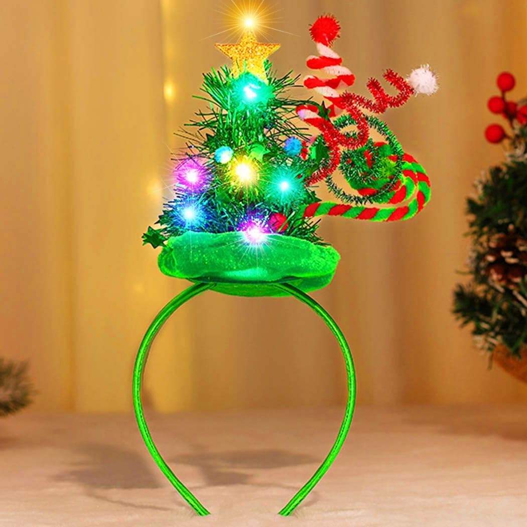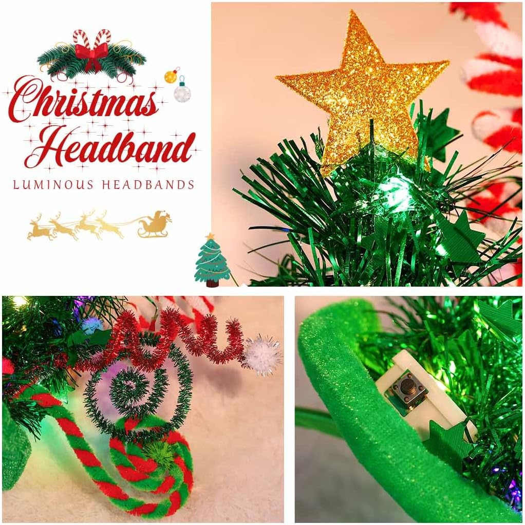 Catery Christmas Hats Headbands Light up Christmas Tree Headband Elf Hair Accessories for Women and Girls