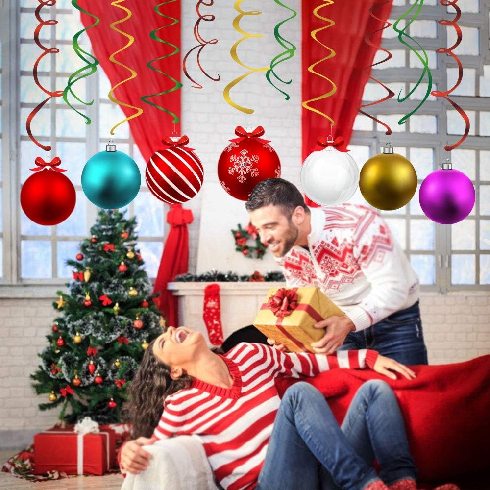 CC HOME 15Pcs Christmas Ball Hanging Swirls Xmas Ball Ceiling Streamer Birthday Decorations Christmas Themed Party Favors for Holiday Baby Shower Home Decoration Party Supplies