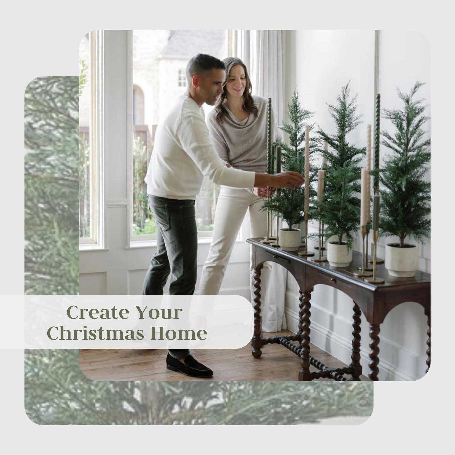 CHRISTMAS DECORATIONS: That will last a lifetime. This set-of-2 artifical cedar trees are carefully assembled to look like the real thing. With zero maintenace required this will quickly become your favorite Christmas greenery for years to come.