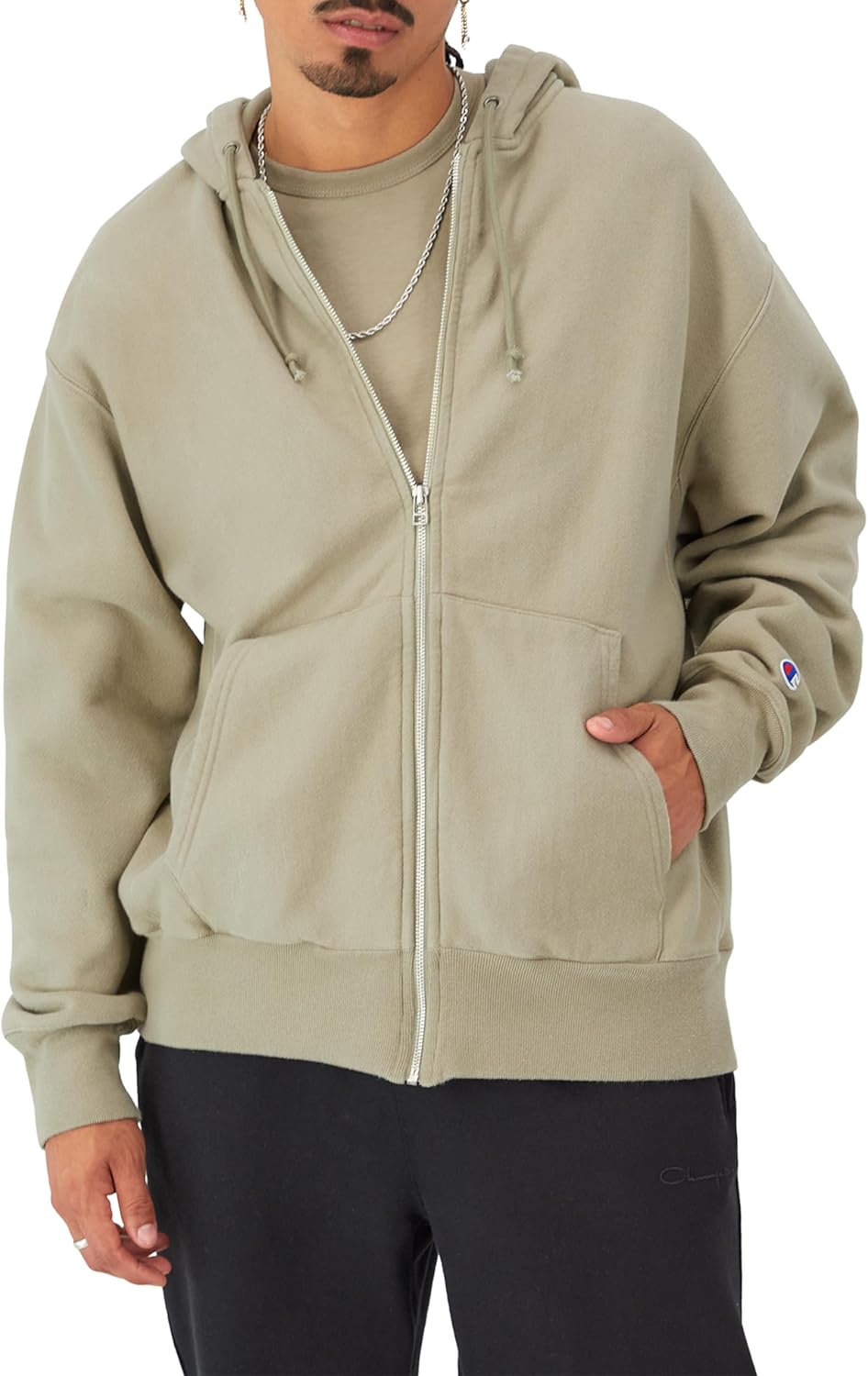 ZIPPED UP STYLE. This easy-on, easy-off standard fit zip-up hoodie is the perfect pre or post-workout sweatshirt for men – made with our OG heavyweight Reverse Weave® fabric that has been cut on the cross-grain to reduce vertical shrinkage, making this hoodie a longtime fave. Classically detailed, this sweatshirt features a full hood with drawcord adjustability, ribbed cuffs, ribbed hems, and two pockets to hold the essentials. Ribbed side panels increase the range of motion so that nothing can slow you down. Made authentic by the iconic C logo on the chest, this men’s zip-up comes in bestselling colors, so you’ll never be without Champion style.