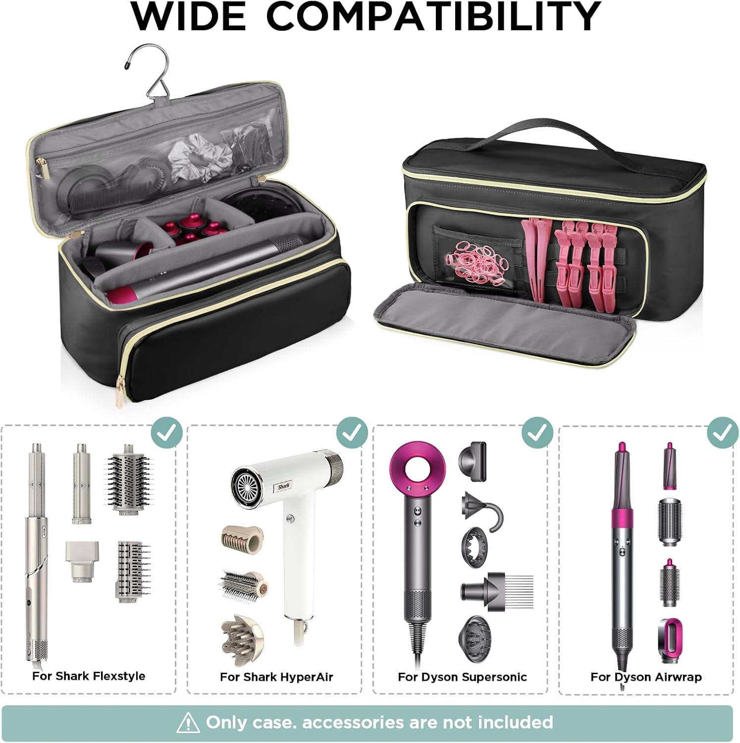 ✅ 【Universal Compatibility】This portable hair dryer travel case designed to fit most hair styling tools, including Dyson Supersonic, Dyson Airwrap, Shark FlexStyle, Shark HyperAir, Revlon and other similar-sized blow dryers & accessories. Keep your hair tools organized and protected during travel.