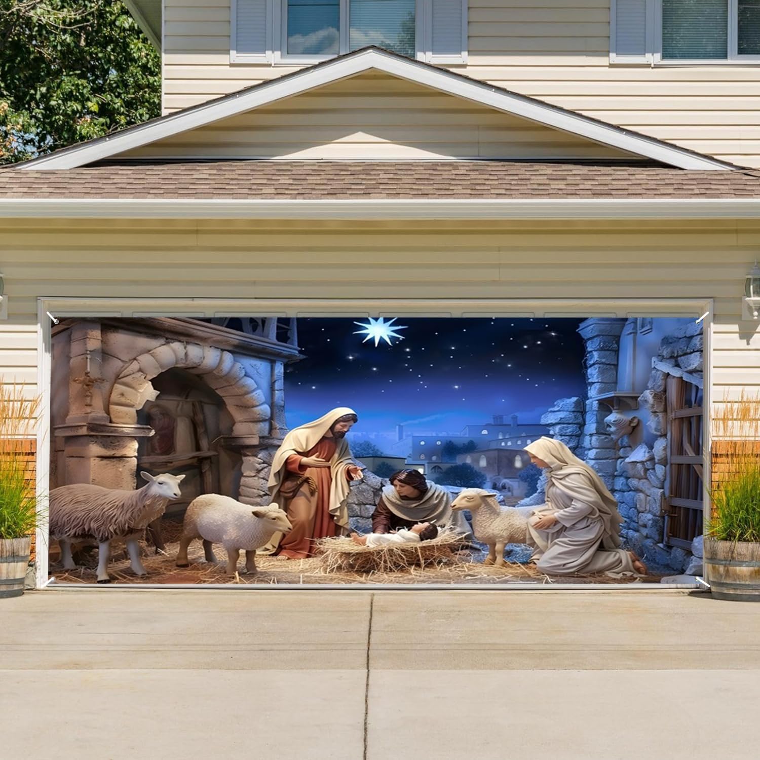 Wide application:garage door banner background can also be fixed to any large wall or area. This is a great garage door decoration for homes, schools, churches, community centers, parks, and other places. It can also be hung on fences, on walls as a decoration, and it is also an ideal backdrop for wedding ceremonies, bridal showers, and birthday parties. Use them as photo backdrops or festive wall hangings to provide a party atmosphere for everyone attending.