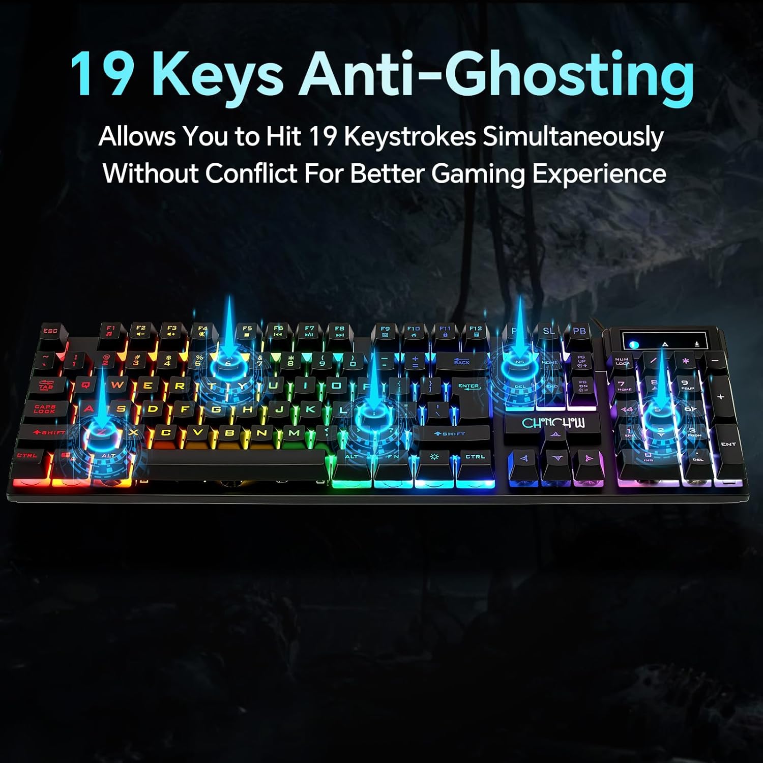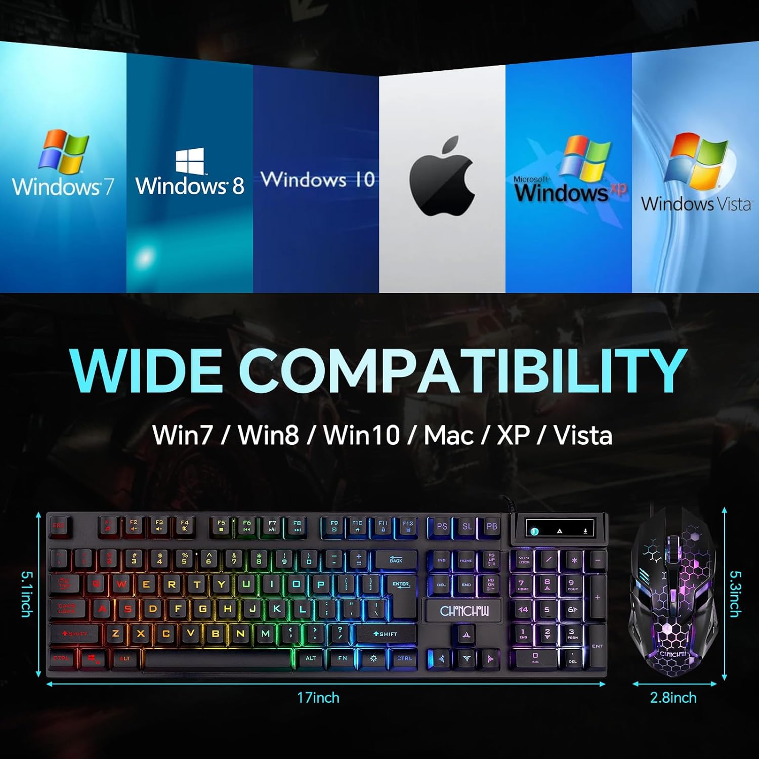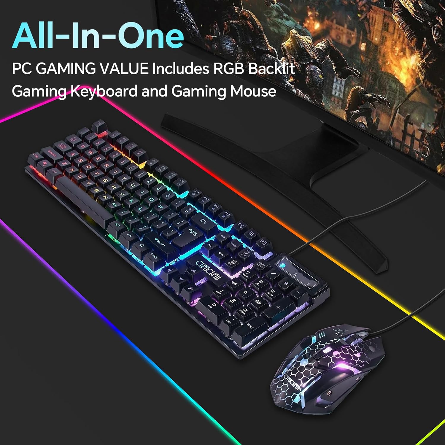 【PC Gaming Keyboard Mouse Combo】ALL-IN-ONE PC GAMER VALUE KIT, This gaming combo Includes CHONCHOW RGB Backlit Gaming Keyboard and RGB Backlit Gaming Mouse, Fantastic for Gamers