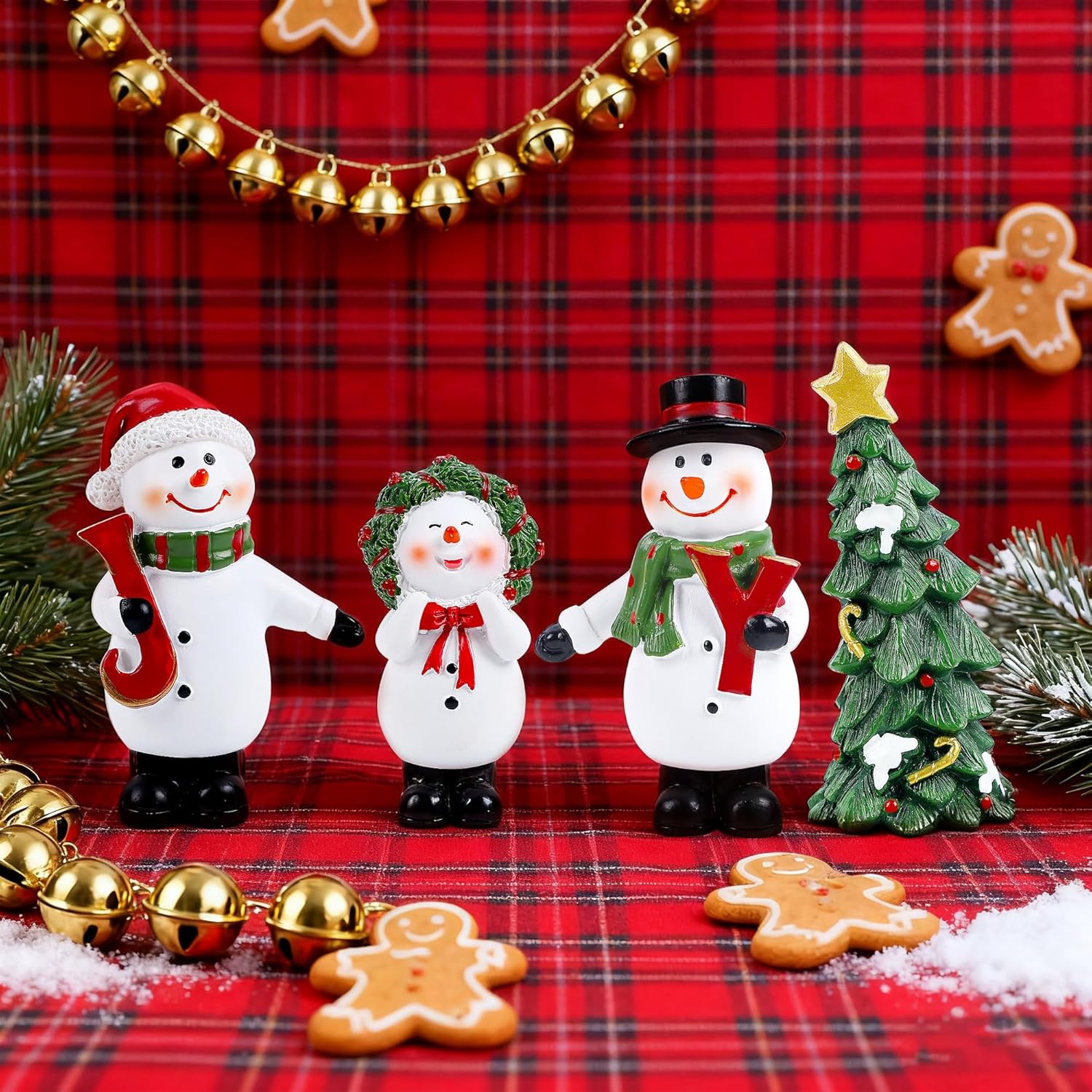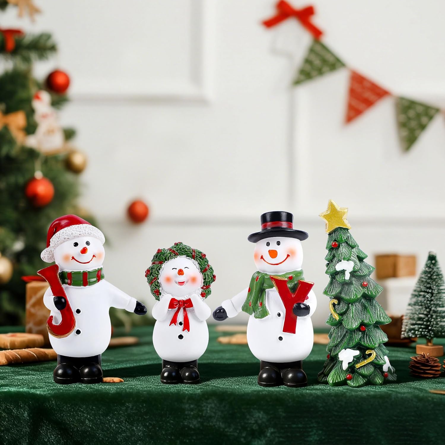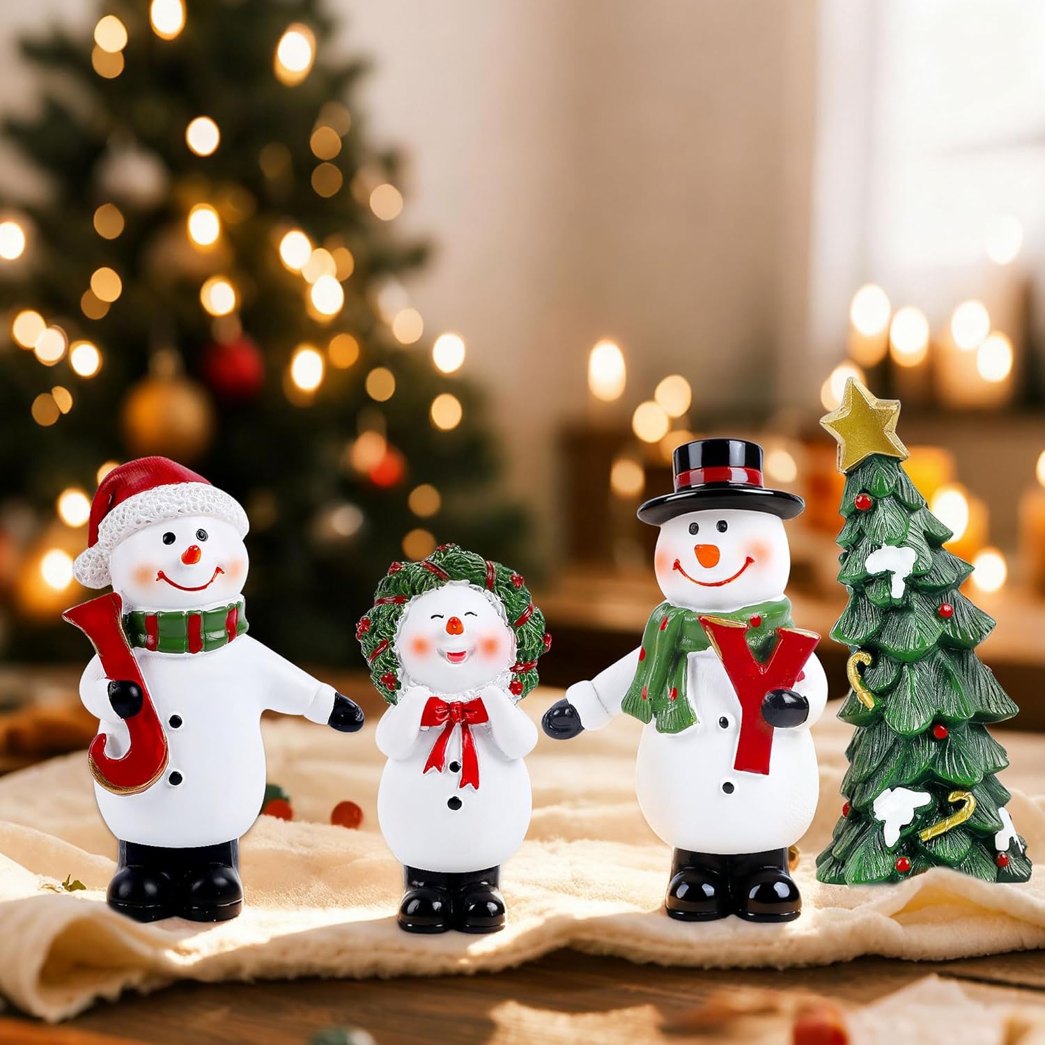 JOYFUL HOLIDAY MESSAGE: Our exclusive set features a snowman family arranged to spell “JOY” – the parents hold the “J” and “Y” letters while the little snowman carries an “O”-shaped wreath. This thoughtful design spreads Christmas cheer and warm wishes, creating a heartwarming scene of family unity and festive happiness for your home.