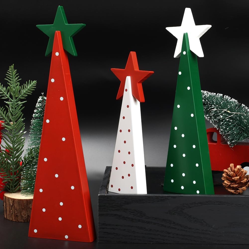 🎄Package Includes: 3 PCS wooded Christmas trees with 3 stars